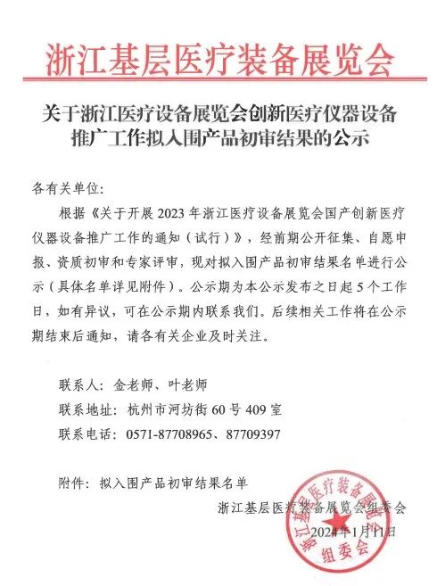 结果公示 | 关于浙江医疗设备展览会创新医疗仪器设备推广工作拟入围产品初审结果的公示