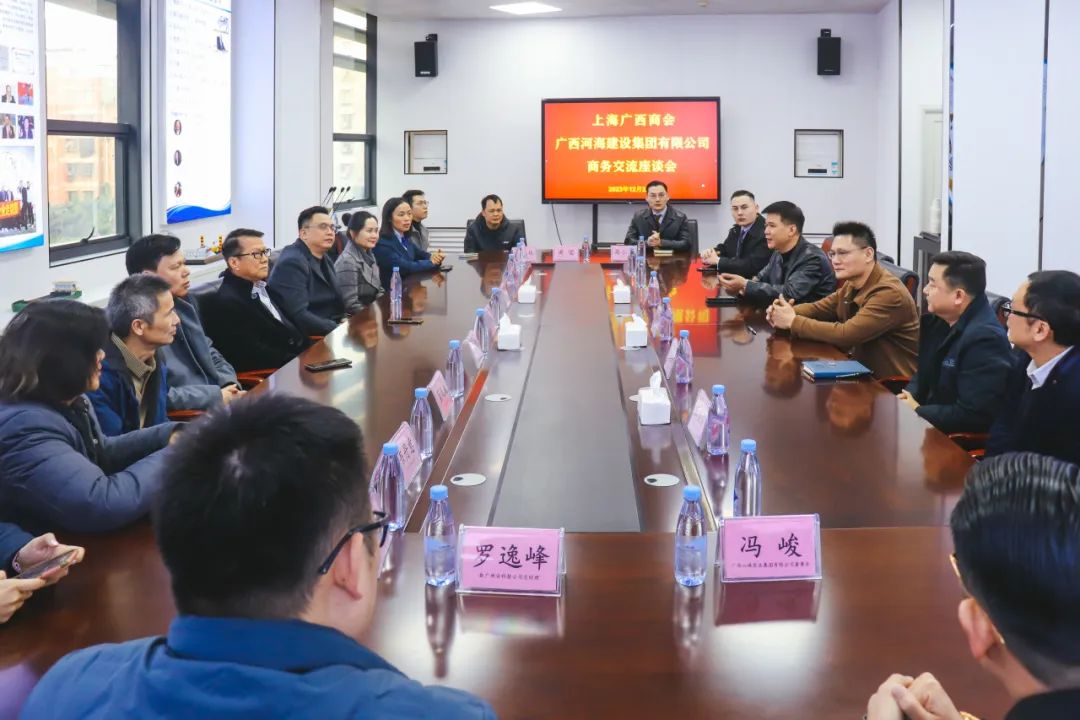 12月22日,上海市广西商会驻会会长蒋勇先生带队走访广西河海建设集团,加强双方交流,探寻合作,上海市广西商会南宁办事处主任韦慈航,上海市广西商会副会长莫基君,中国美术家协会会员蓝凡武、韦丹意,数广网安科技公司总经理罗逸峰,广西山族实业集团有限公司董事长冯峻,北京华胜天成广西办主任黄莺,广西盛圣缘商业投资有限公司总经理陈意彤等人同行。