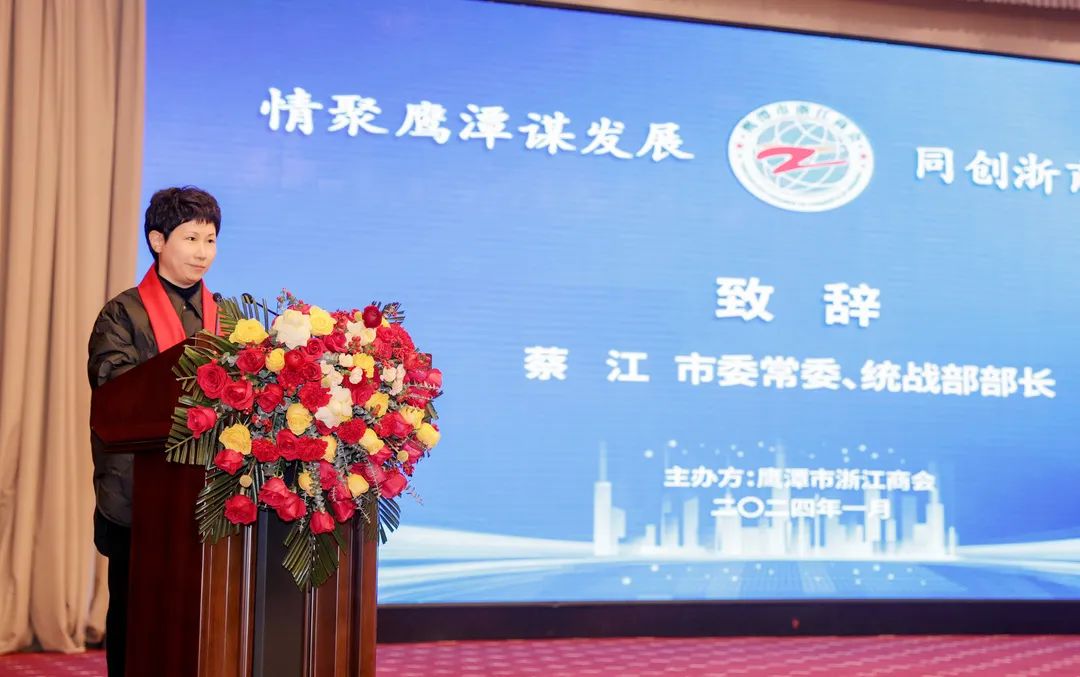 蔡江对大会的成功召开表示祝贺,她希望鹰潭浙江商会要深入学习贯彻习近平总书记考察江西重要讲话精神,聚焦“走在前、勇争先、善作为”的目标要求,围绕打造“三大高地”、实施“五大战略”,奋力谱写中国式现代化鹰潭篇章。要不忘初心、坚定信心,大力弘扬浙商精神,在践行新发展理念中勇当排头兵、先行者,为我市构建现代化产业体系贡献浙商力量。要深耕主业、勇于创新,聚焦打造国家级铜基新材料先进制造业集群,为我市经济发展注入新的活力。要优化环境、助力发展,大力推进营商环境优化升级“一号改革工程”,构建“亲”“清”新型政商关系,让广大浙商在鹰潭投资放心、创业安心、发展顺心。