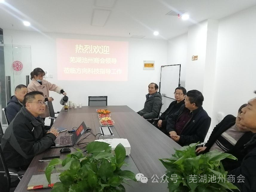 参加安徽方向科技有限公司走访的还有芜湖池州商会副会长王双红、副会长陶立生、理事周旺来。在走访中还就培训、企校衔接等话题进行了交流。