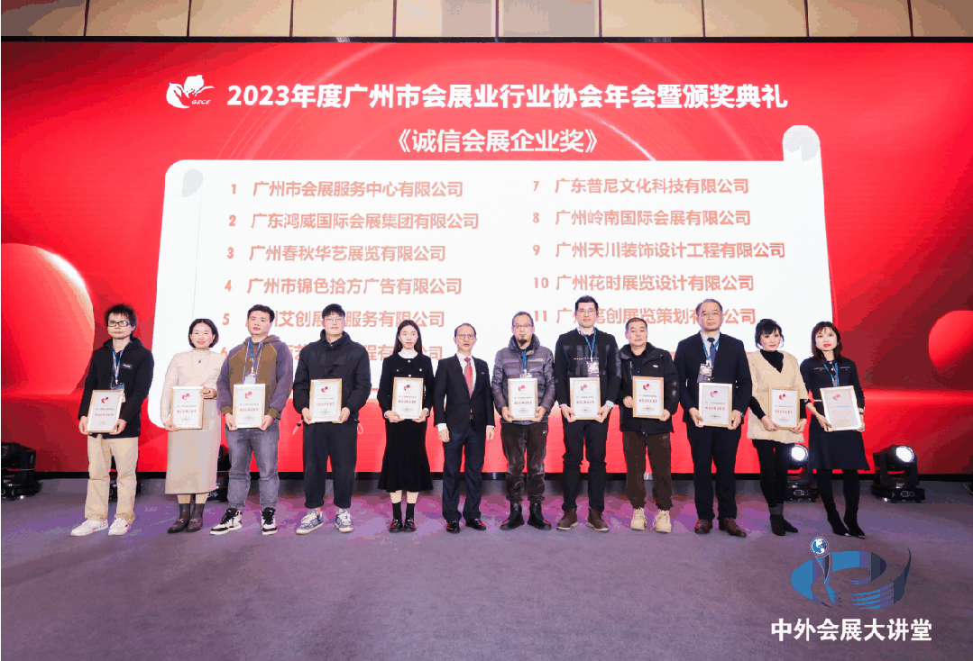 广州市会展服务中心有限公司、广东鸿威国际会展集团有限公司等22家企业荣获《诚信会展企业奖》,南丰国际会展中心、广州体育馆等40家企业荣获《优秀会展服务企业奖》,2023第七届中国(广州)国际养老健康产业博览会、第12届中国(广州)国际金融交易·博览会等12个展会荣获《优秀品牌展会奖》,广州城市职业学院、华南理工大学等7个院校荣获《优秀会展院校奖》,蒋卫勇、陈蔚玫等12位同志荣获《优秀会展企业家奖》,李超佐、毛再荣等15位同志荣获《领军人物奖》,邹海萍、欧阳云等5位同志荣获《行业领袖奖》,树立了行业标兵,弘扬了正能量。