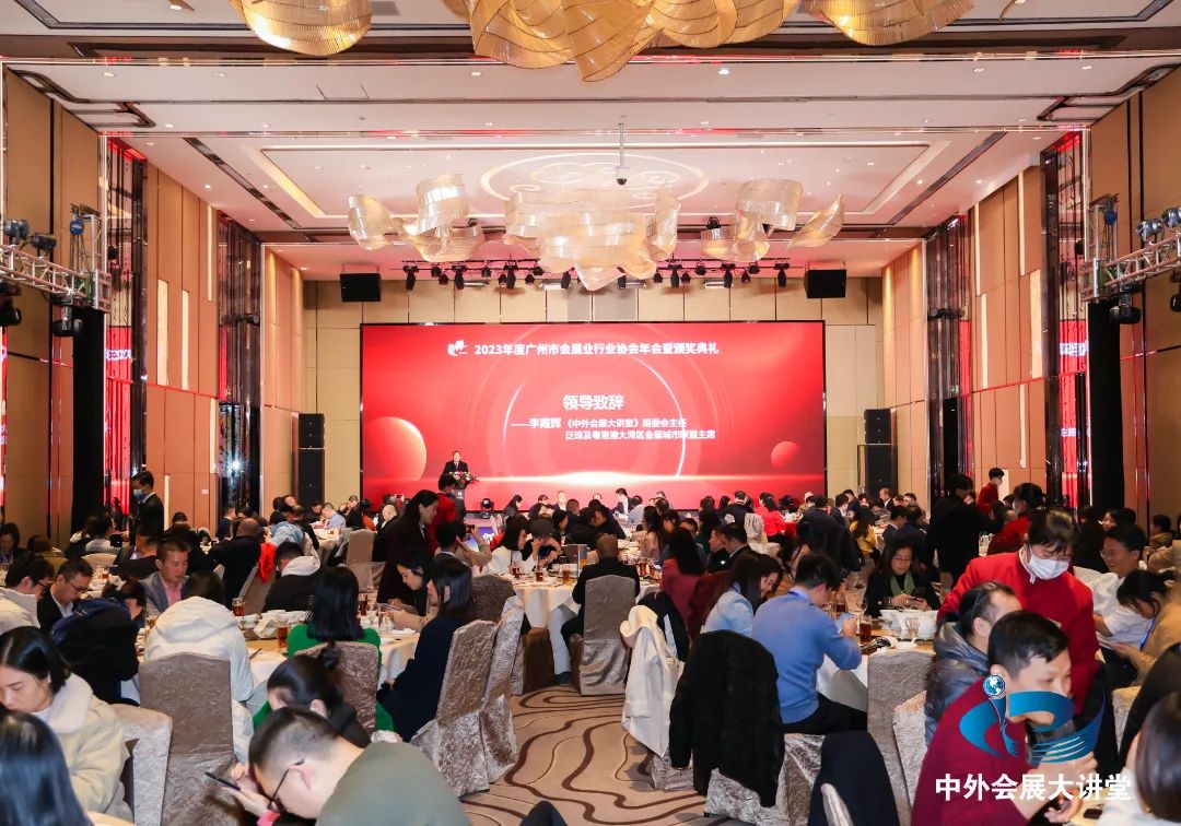 2023年12月21日,为总结2023年广州会展行业发展情况,表扬先进单位和个人,全面展示企业的会展文化和会展人的精神风貌,广州市会展业行业协会年会暨颁奖典礼在广州白云宾馆隆重举办。出席会议的政府领导、外地城市特邀嘉宾、会员企业代表、高等(会展)院校代表共350余人欢聚一堂,交流经验,谋划未来。