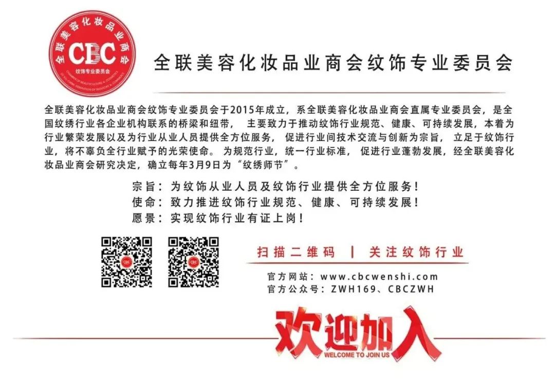 欢迎全国的纹绣家人加入进来,共同推动纹绣行业职业技能培训的工作,让我们共同促进行业规范,加强行业自律,提高从业人员技能水平,为美丽人生、美化生活做出我们的贡献。希望通过行业同仁们的共同努力,让纹饰行业真正插上腾飞的翅膀!
