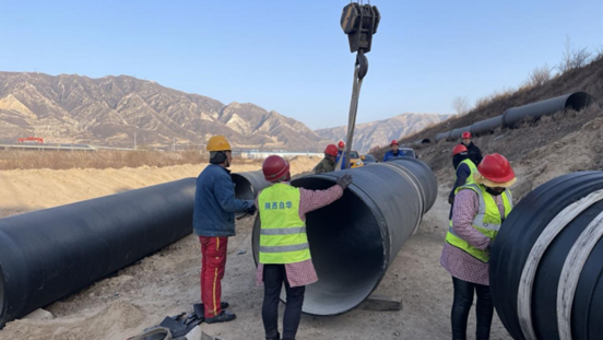 Ⅱ标输水管线工程:3+996-3+711段5-2#排气阀井浇筑1座。1+670-0+000段安装DN1200自锚式球墨铸铁管78米,镇墩钢筋绑扎1座。累计形象进度:管沟开挖3820m,管道安装2896m,完成镇墩29座,完成排气阀井2座。