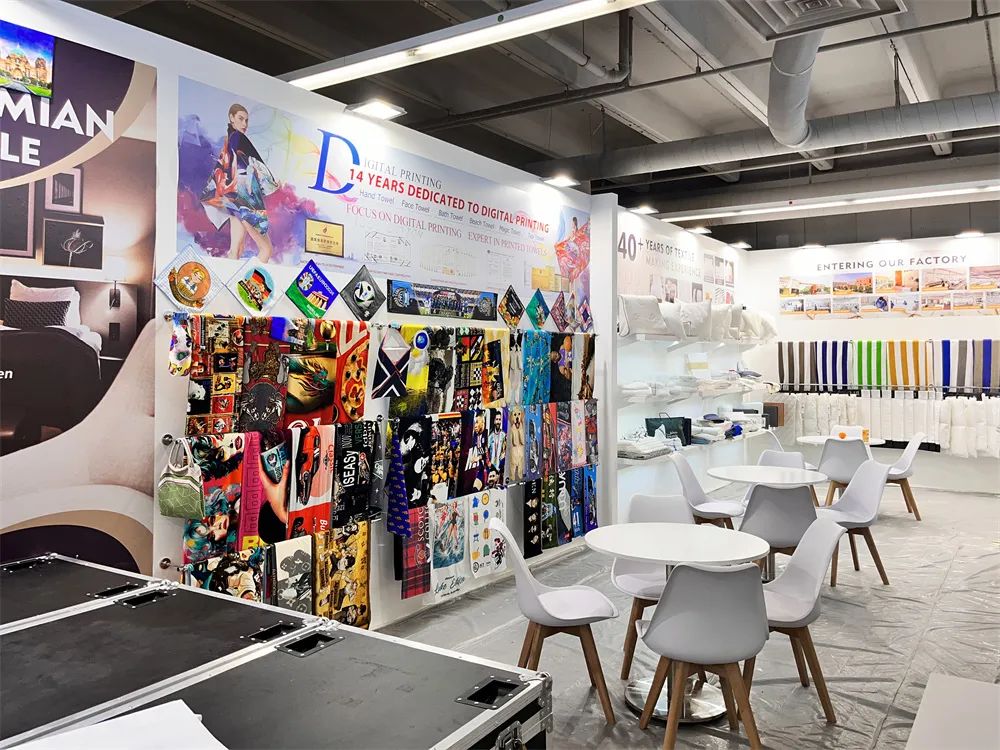 另外我司本次在现场也是带去了很多印有欧洲元素的印花毛巾类产品,不仅可以吸引欧美客户的眼球,也希望可以让大家直观的看到数码印花定制的优势与我司产品的一个品质。当然现场也是有着一些我司设计的有着我们国内元素的国风设计图案印花毛巾类产品,也希望客户/消费者在看到产品的时候也可以了解到我们国内的一些文化,尽自己的一些力量去促进双方的文化交流。