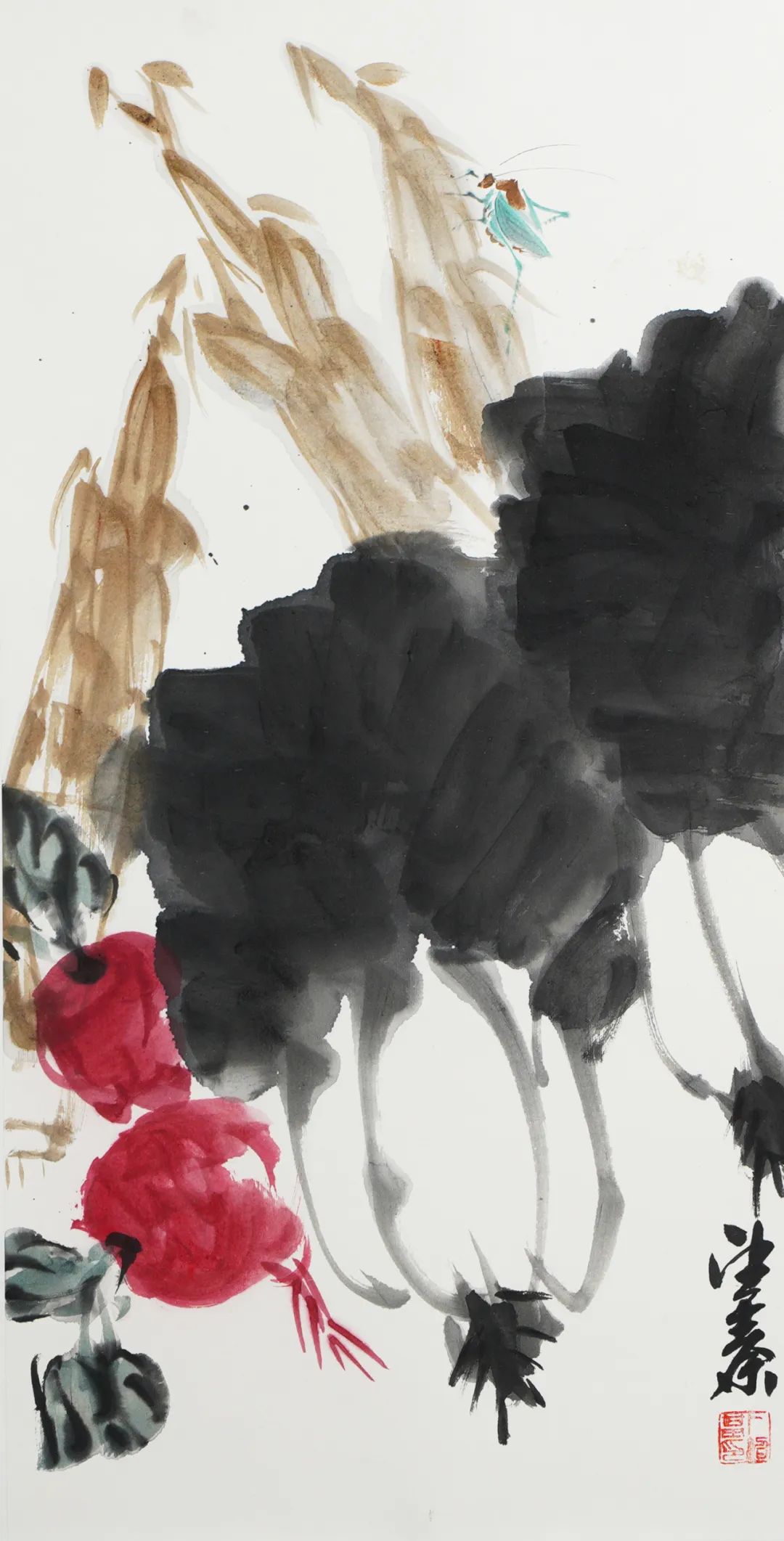 其画中的草木花卉虽清净但不乏生气,鱼虫雀鸟在栖息时的休闲神态与其用墨用笔和谐相生、相辅相成,创造出一种貌似喧闹,实则静穆,生机盎然却又闲适安寂的天然意趣。