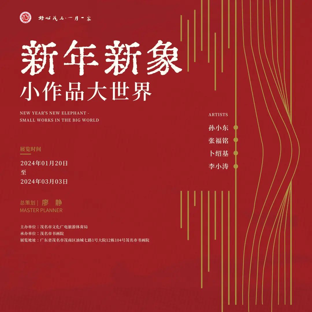 为各位带来一份新年礼物,用百余幅作品为你留住逝去岁月中的美好,开启新“相”,新年新气象。让观众们感受到艺术的无穷魅力,同时也为茂名市的文化艺术事业添砖加瓦。让我们共同期待这场跨年的艺术盛宴。