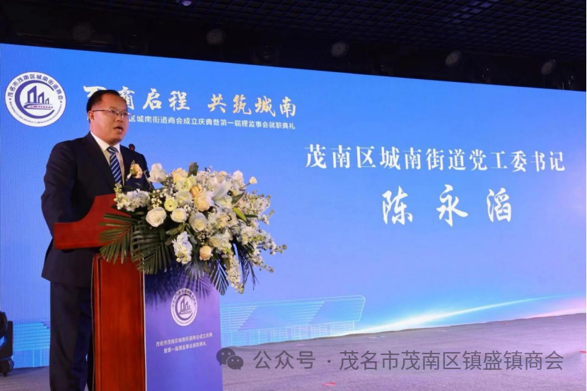 陈永滔书记表示,城南街道商会成立,是围绕茂名“两轴—两个圈层”城市发展新战略,推动“百千万工程”在城南落地见效的一个重要里程碑,对推动城南街道高质量发展有着非常深远的意义。街道商会作为区域产业振兴的“带头人”、政企协同的“中间人”、服务企业的“自己人”、社会服务的“热心人”,是促进城南辖区经济发展、保障企业利益的重要力量,必将助力城南民营经济实现高质量发展,推动街道“百千万工程”落地见效。