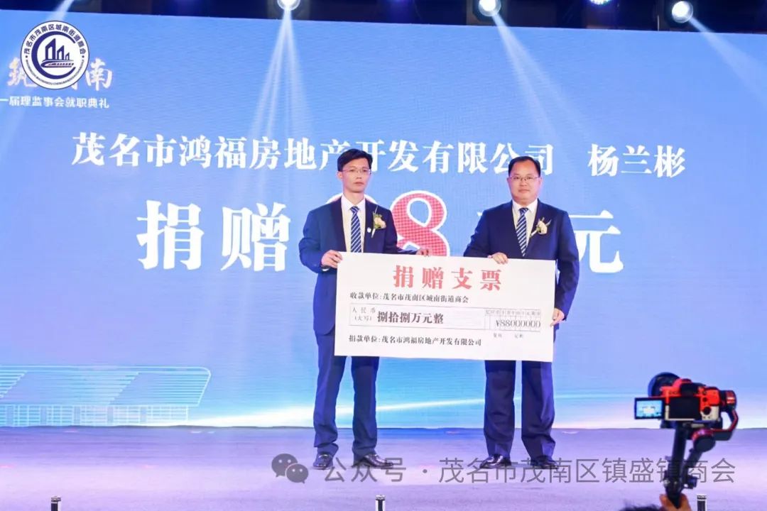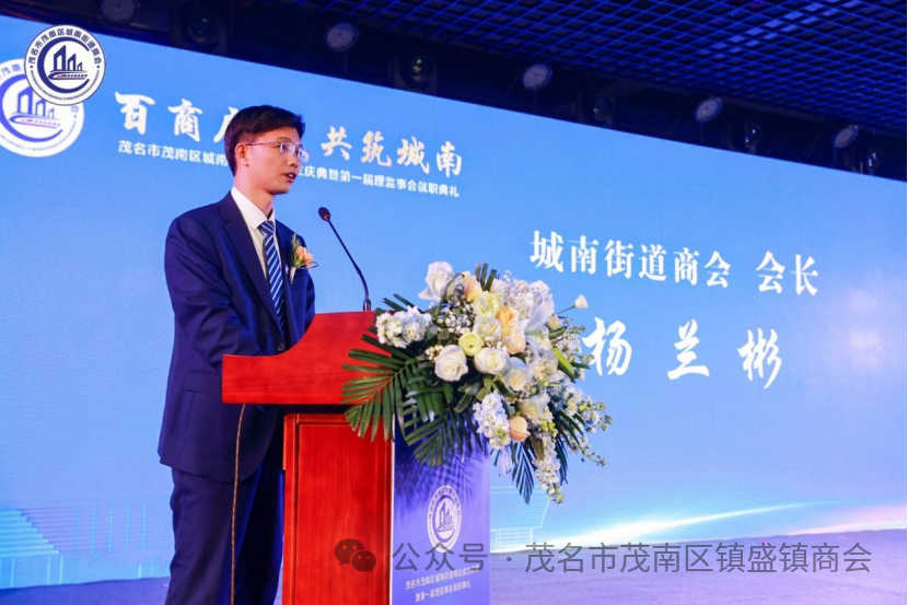 大会上,主持人宣读了茂南区城南街道商会第一届理监事会当选人员名单和聘任名单,杨兰彬当选会长、张帆当选监事长、钟晴当选秘书长,并向全体人员播放了城南街道宣传片,茂南区民政局党组成员、副局长梁国雄宣读了关于城南街道商会成立的批复。随后,举行城南街道商会成立揭牌仪式、银行授信仪式和捐赠仪式。