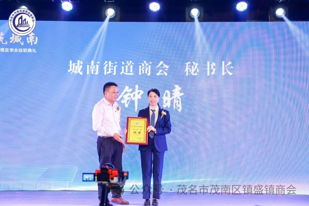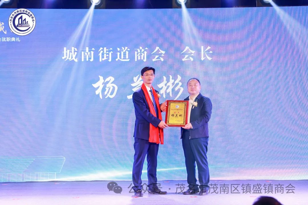 ▲茂南区委书记廖述毅为会长颁发当选证书