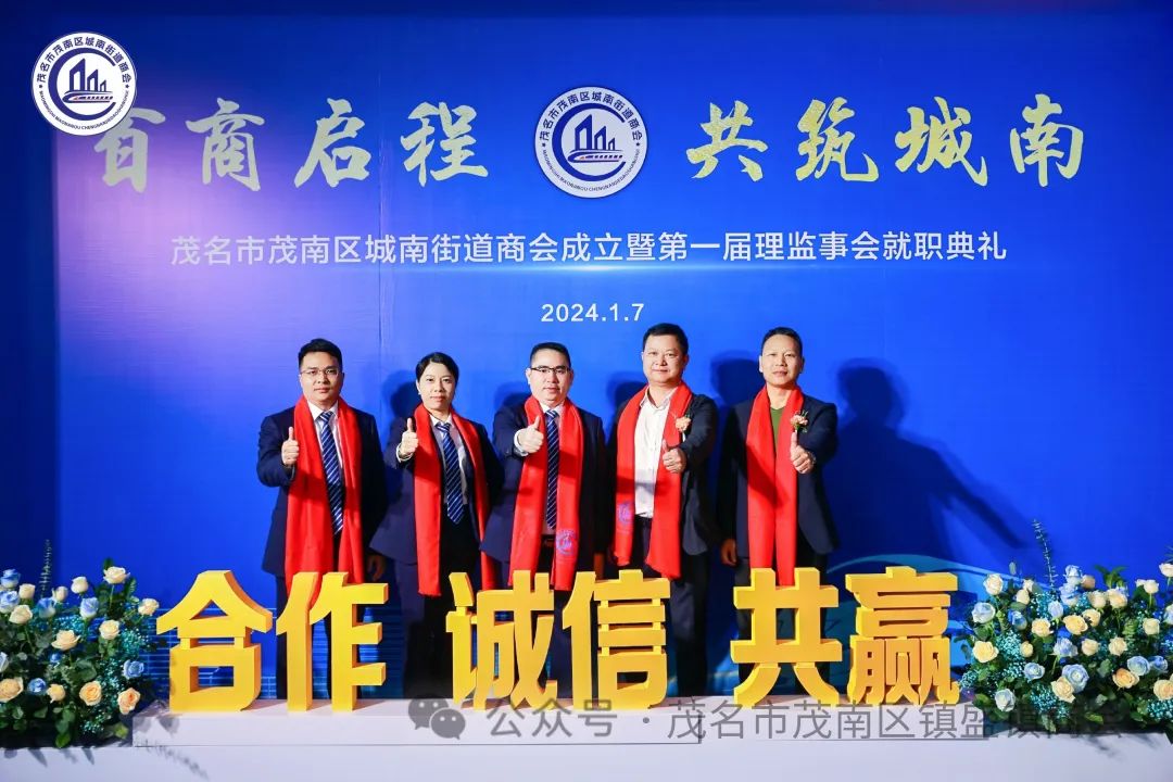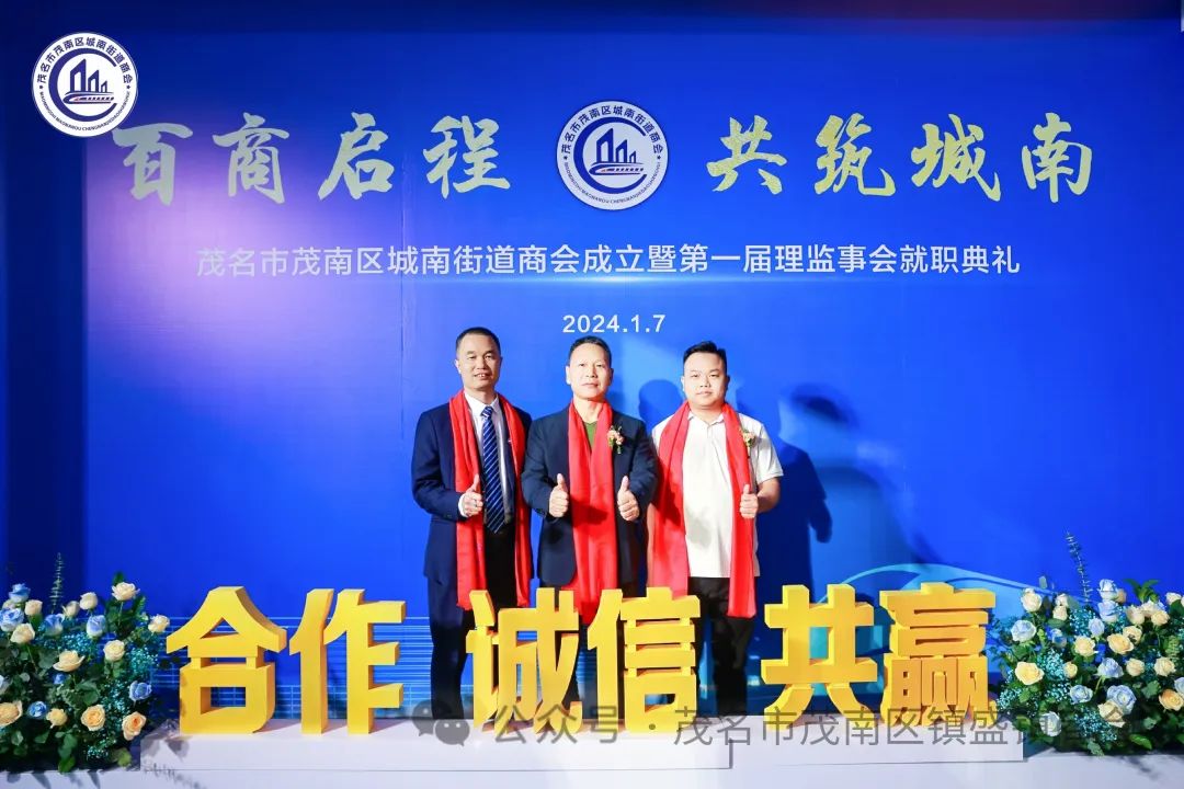 我会会长李冈健、常务副会长兼秘书长何文艺、理事李凌辉作为商会代表出席同贺茂名市茂南区城南街道商会成立暨第一届理监事会就职典礼圆满成功。