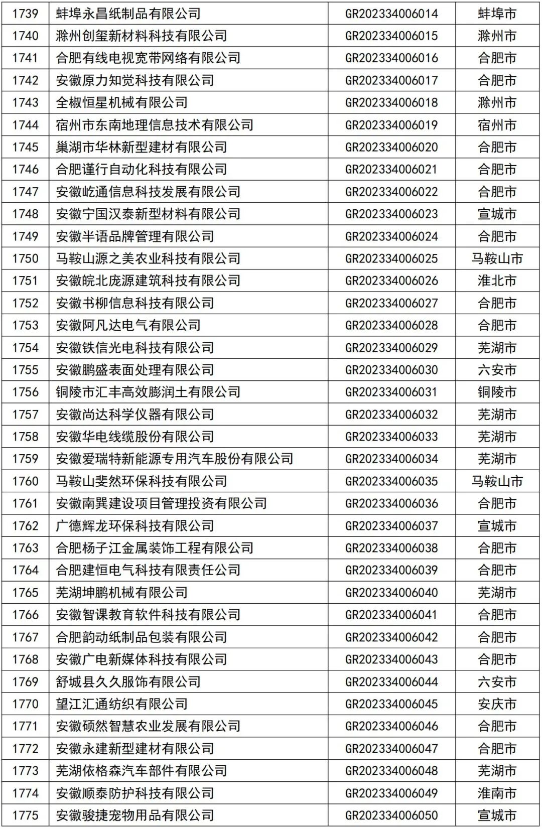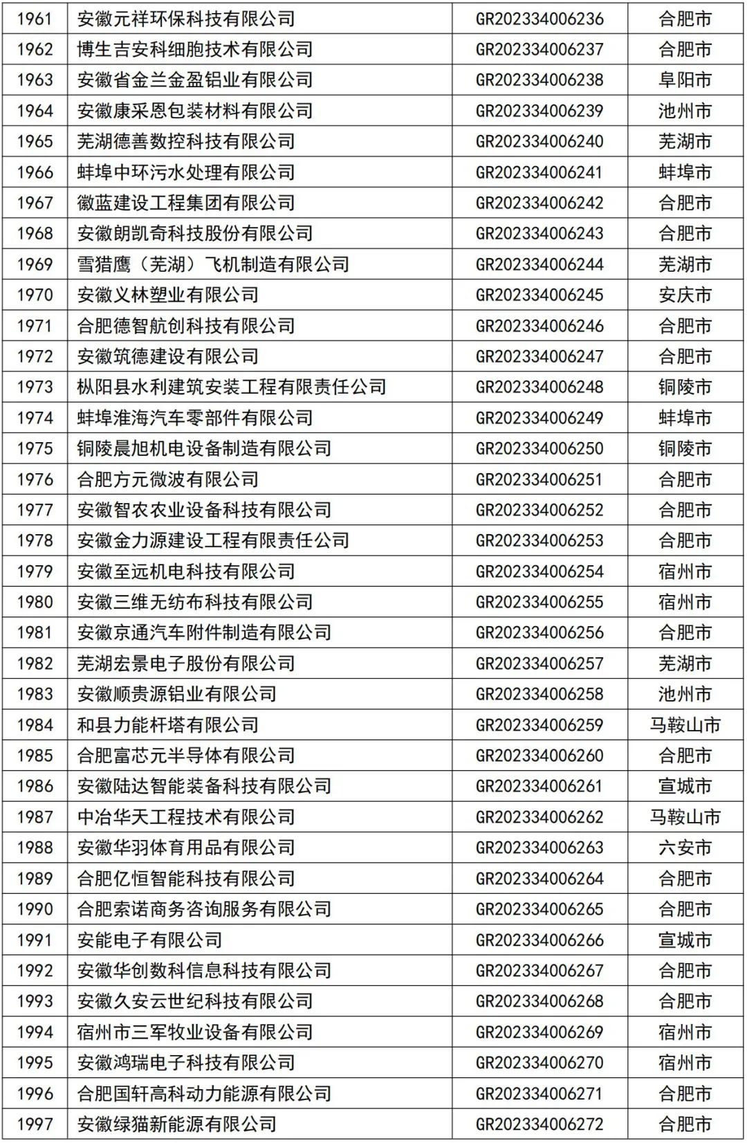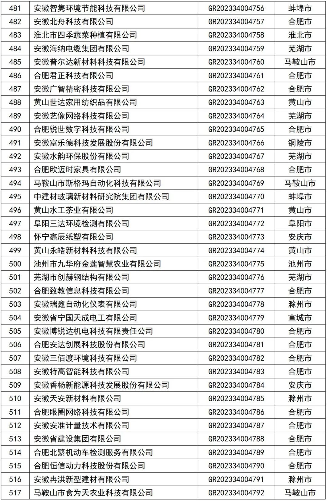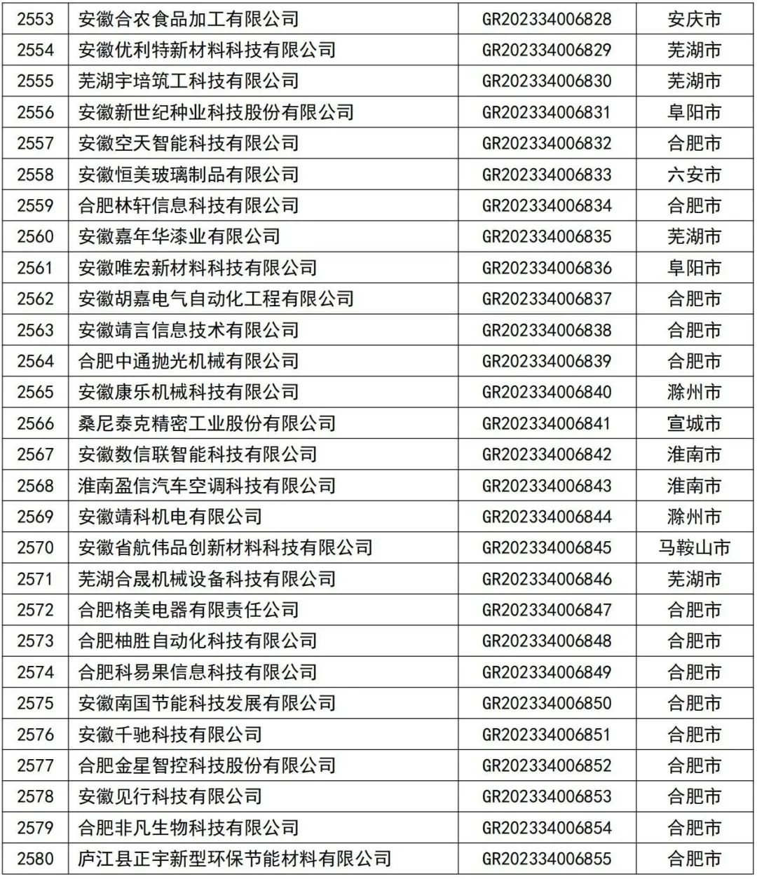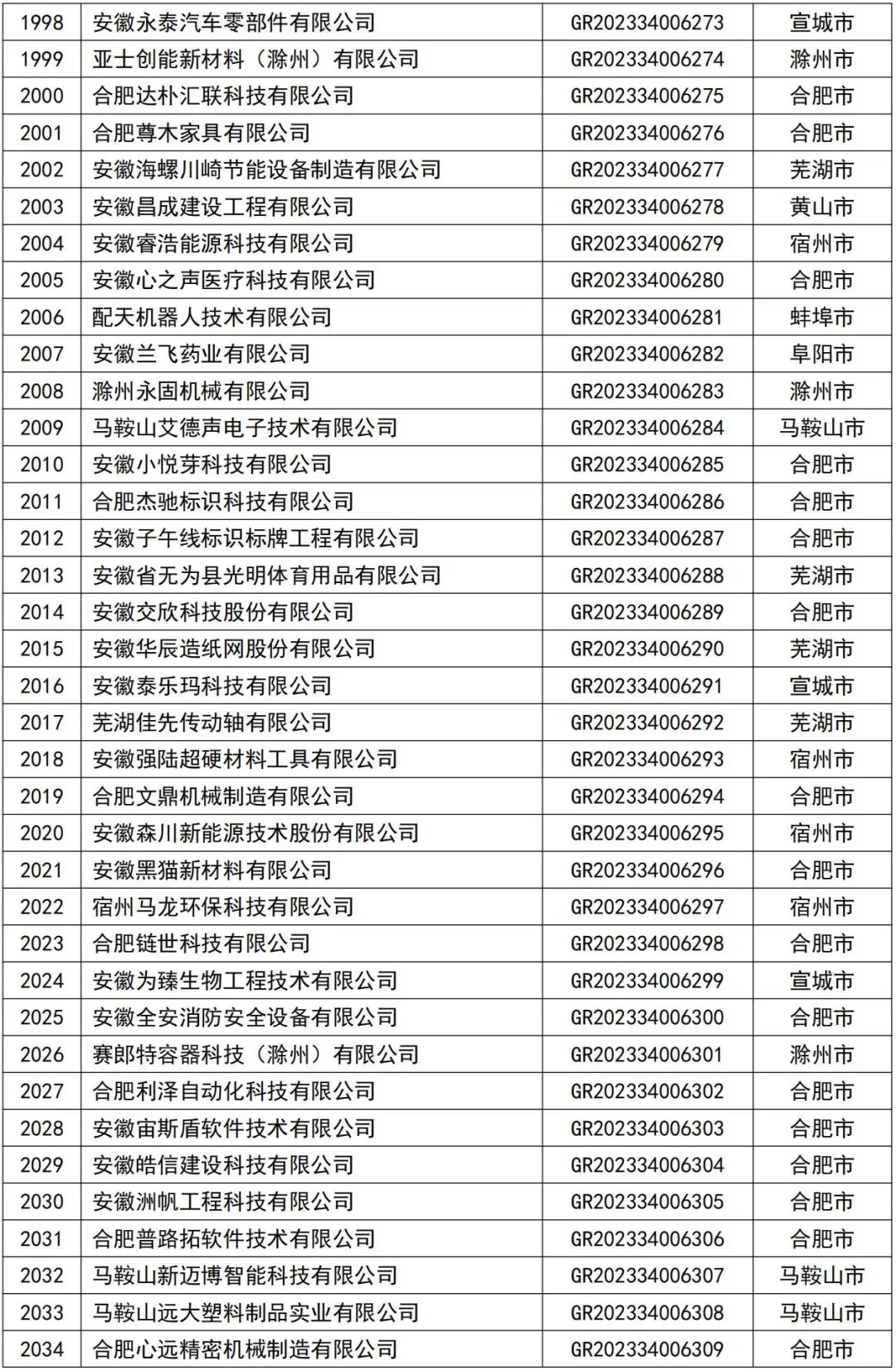 关于公布安徽省2023年第二批高新技术企业认定名单的通知