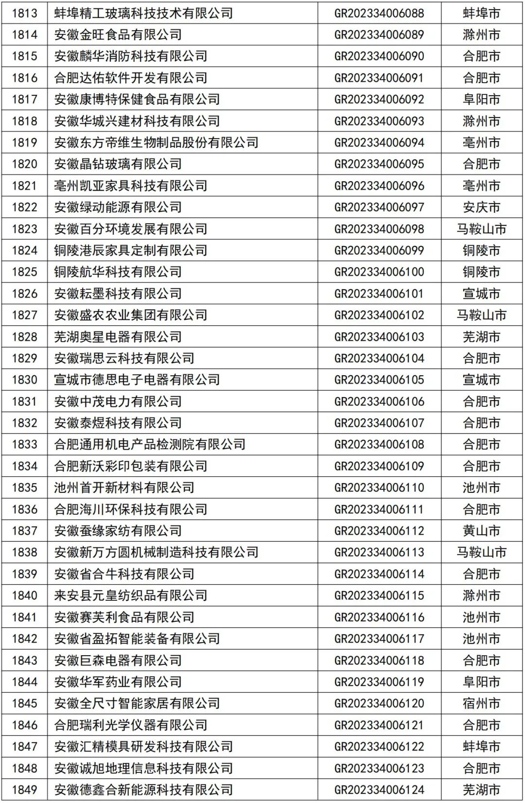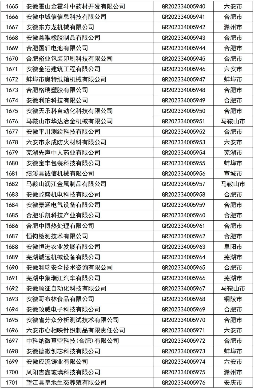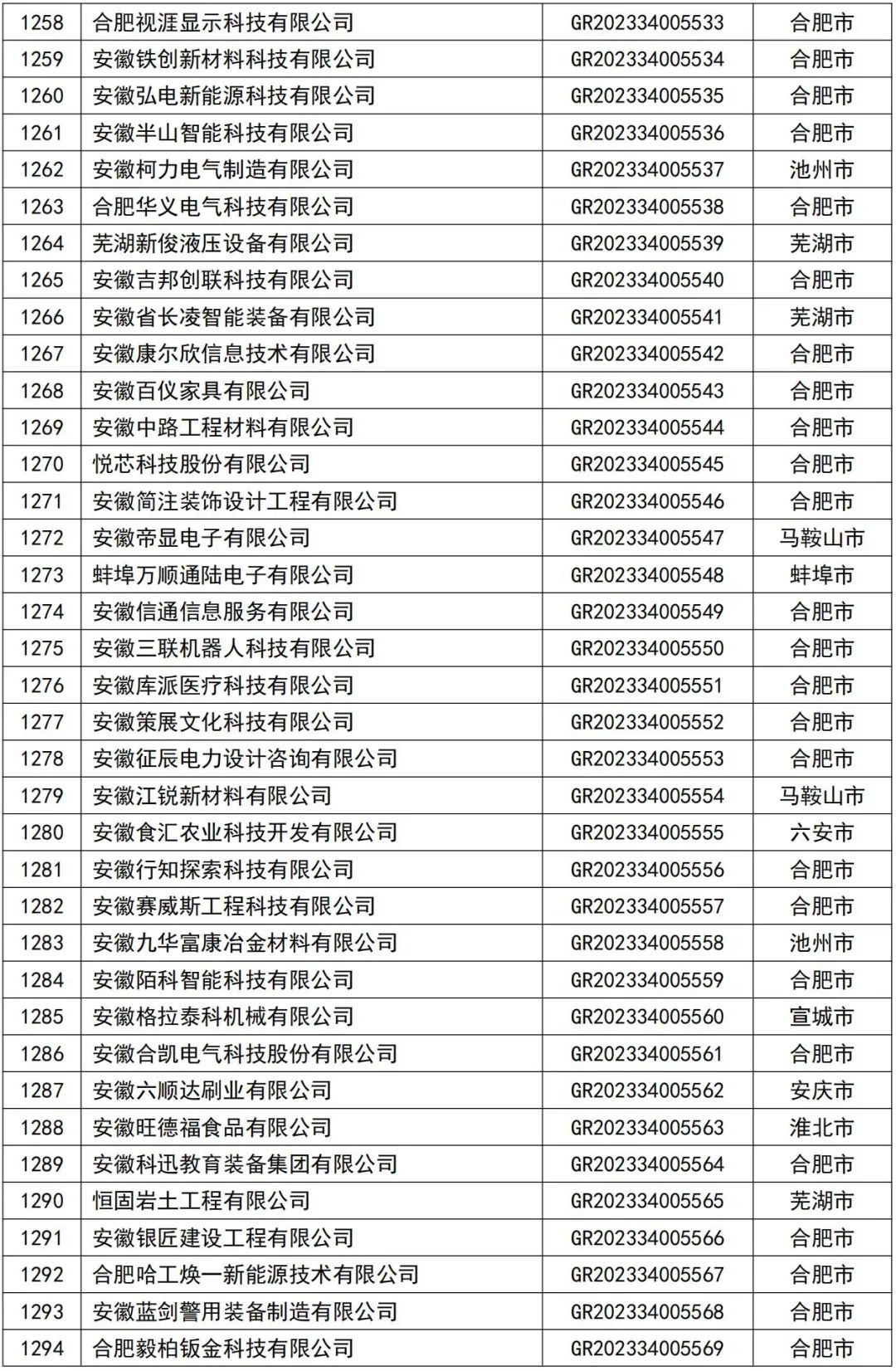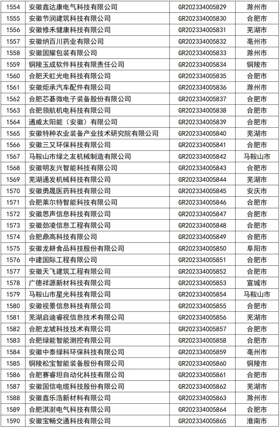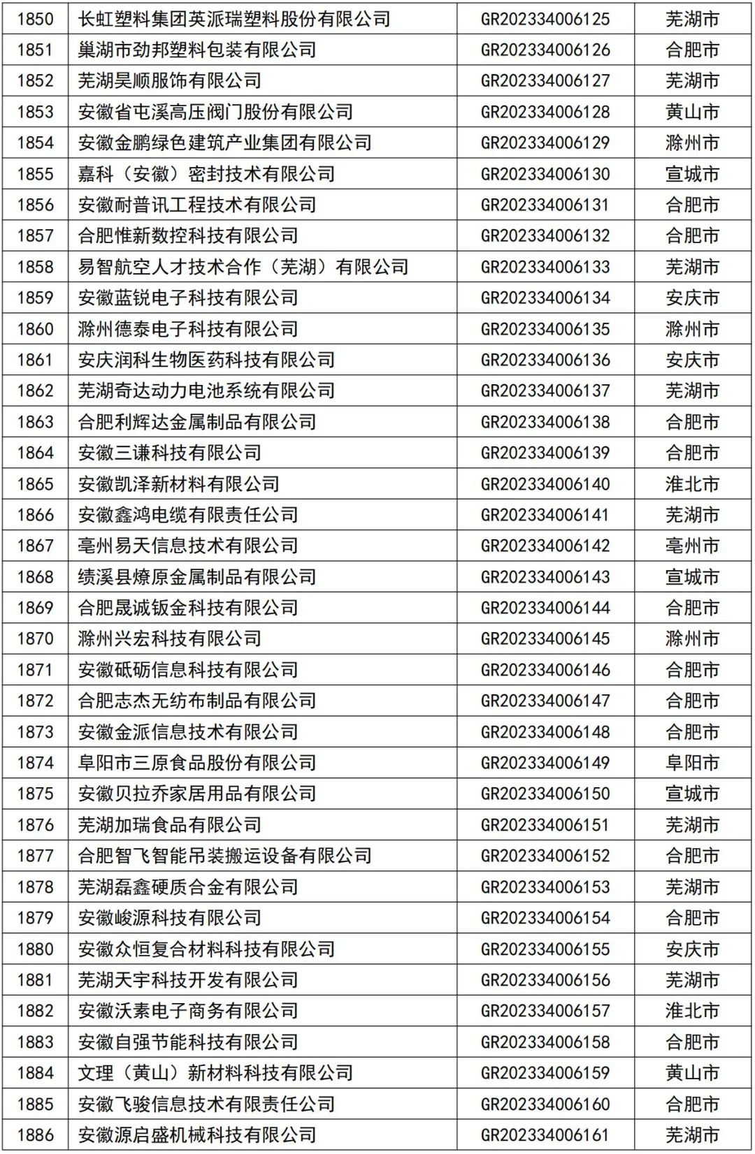 关于公布安徽省2023年第二批高新技术企业认定名单的通知