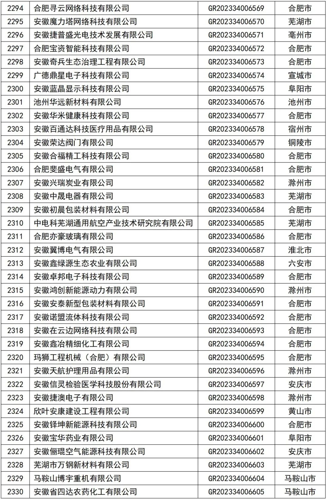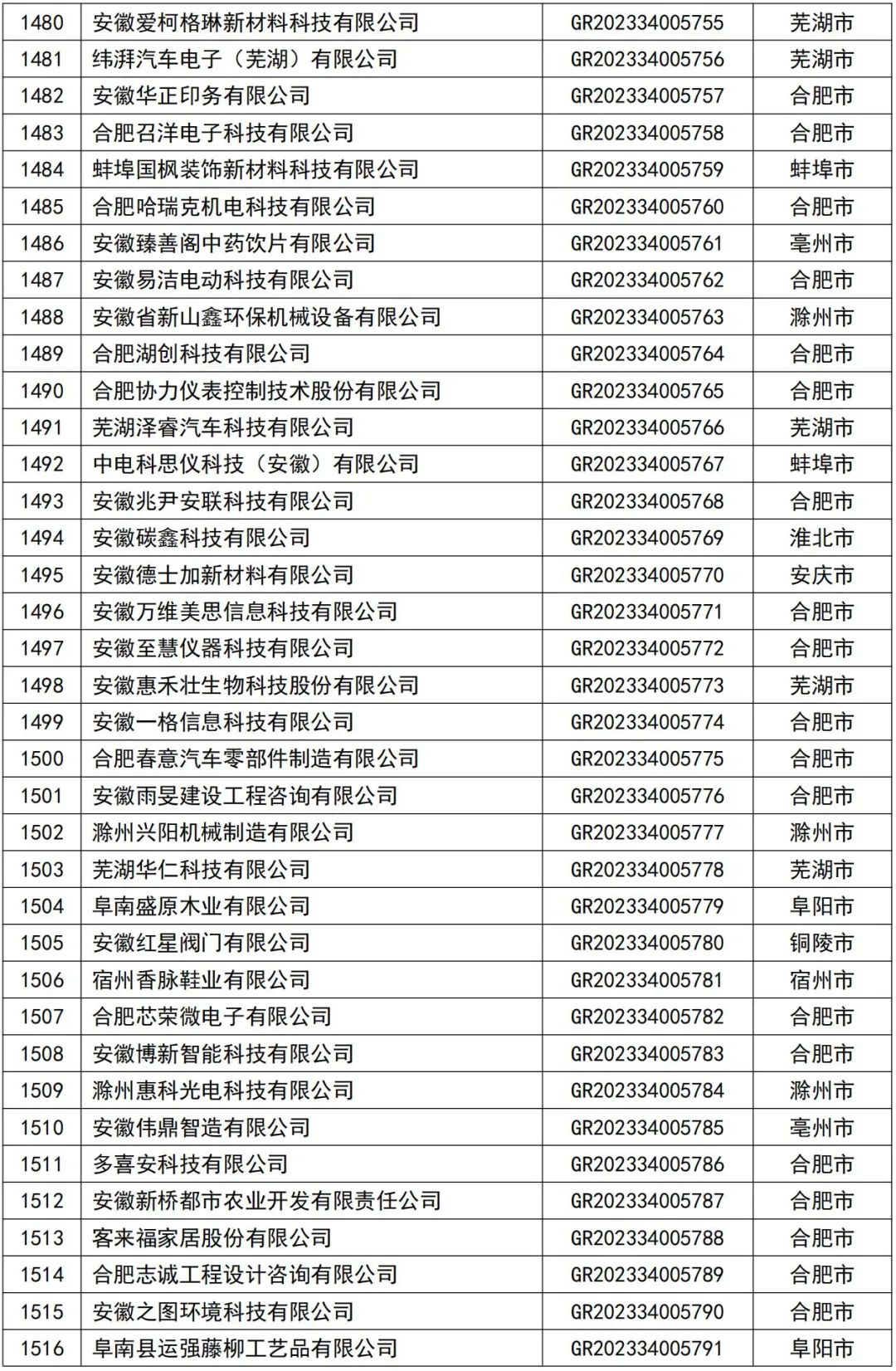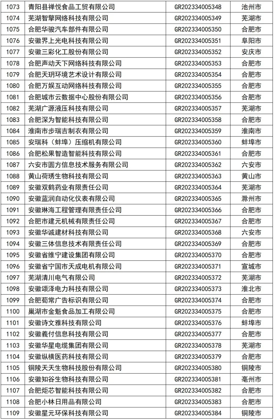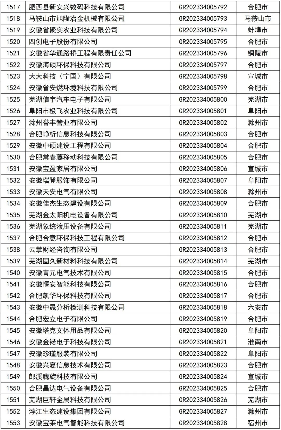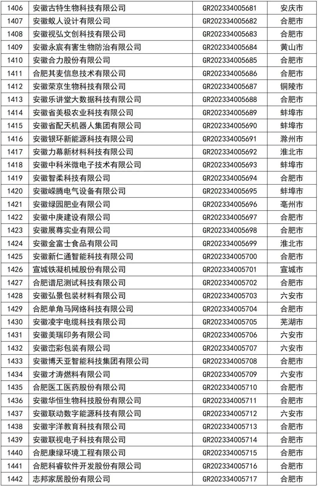 关于公布安徽省2023年第二批高新技术企业认定名单的通知
