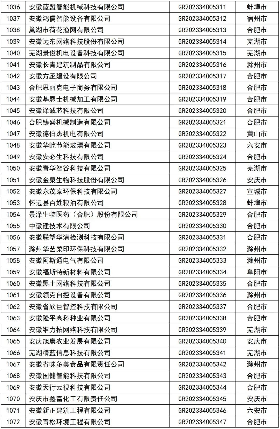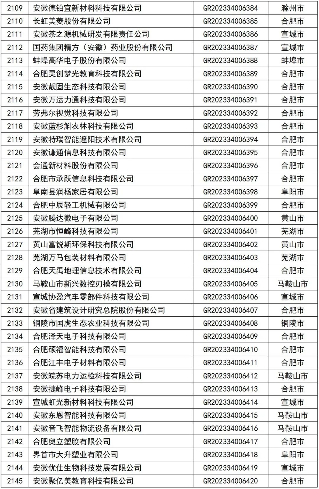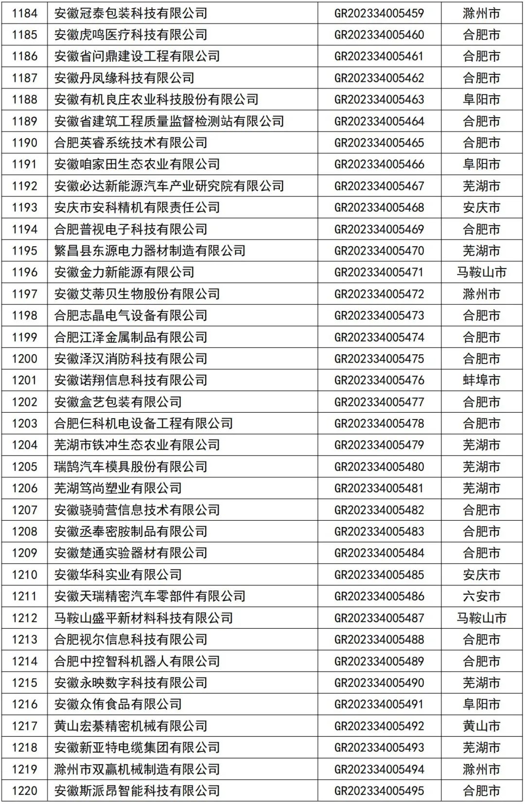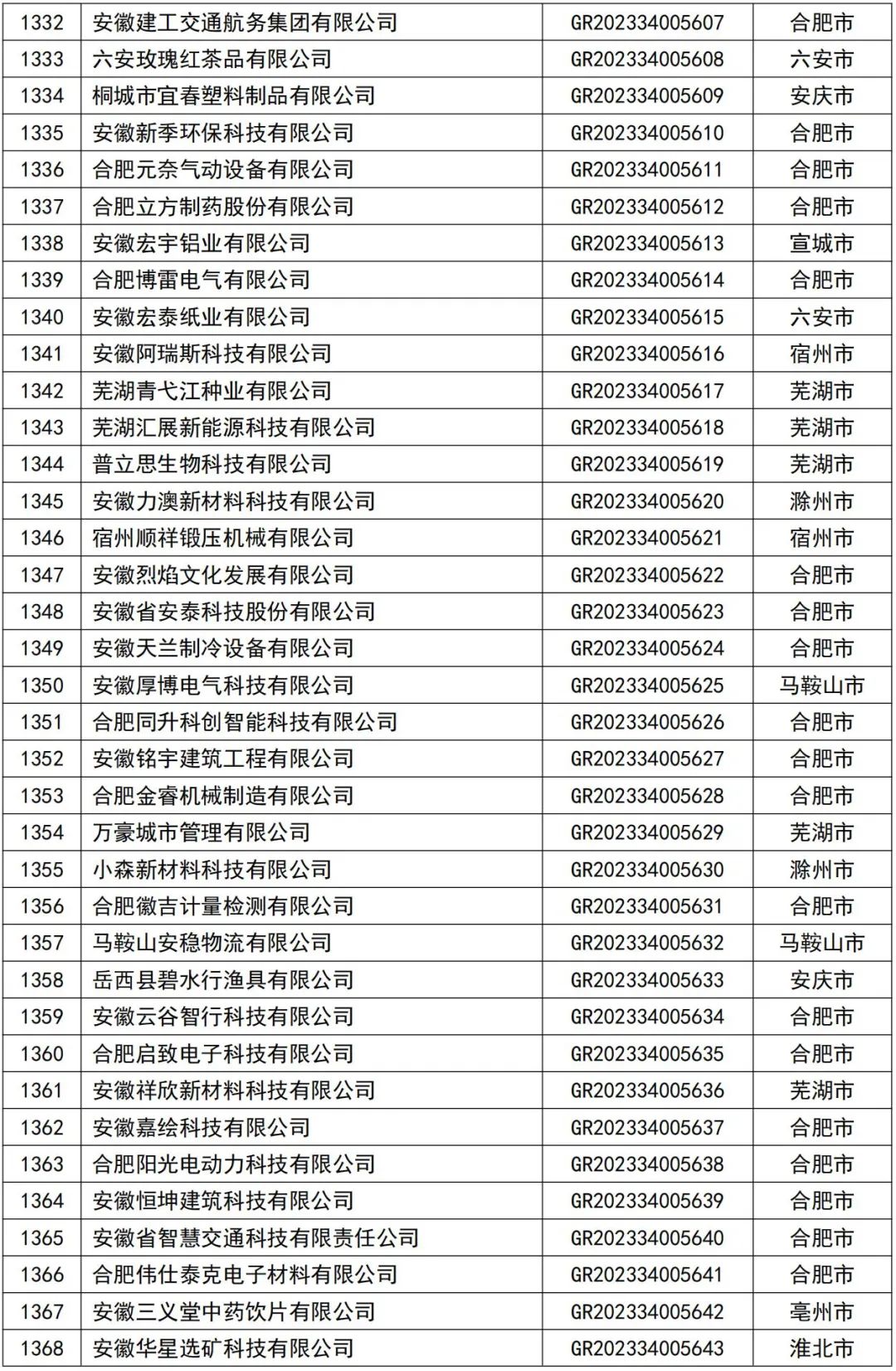 关于公布安徽省2023年第二批高新技术企业认定名单的通知