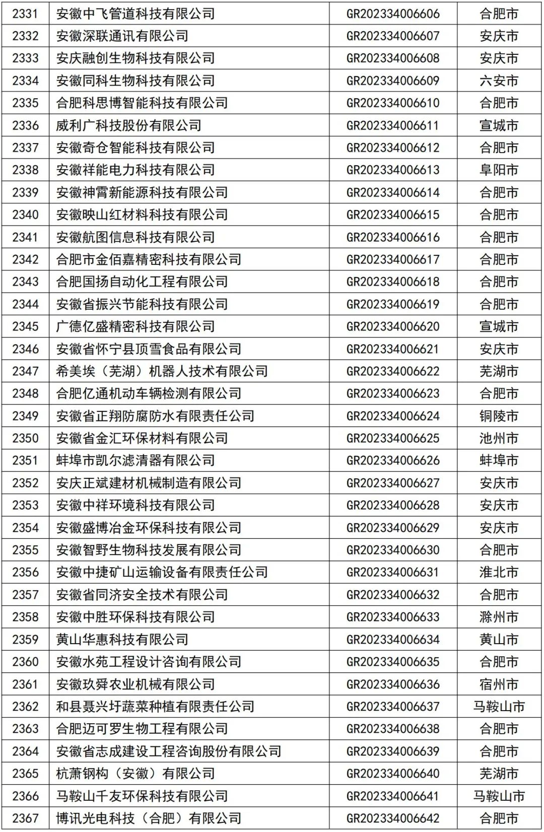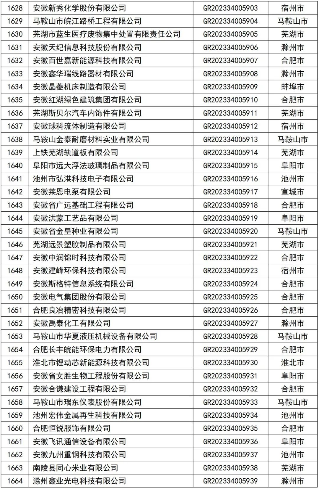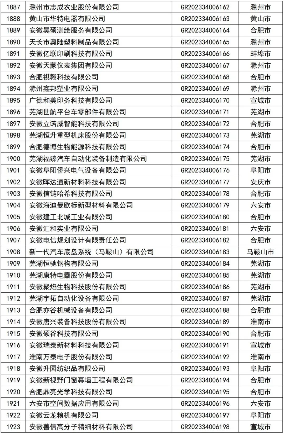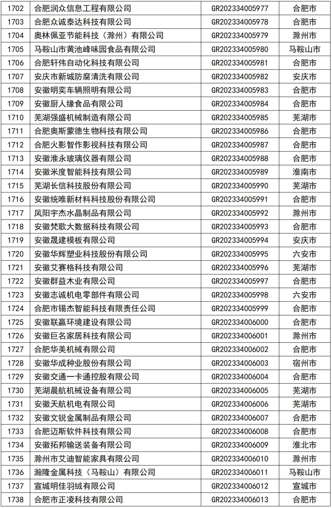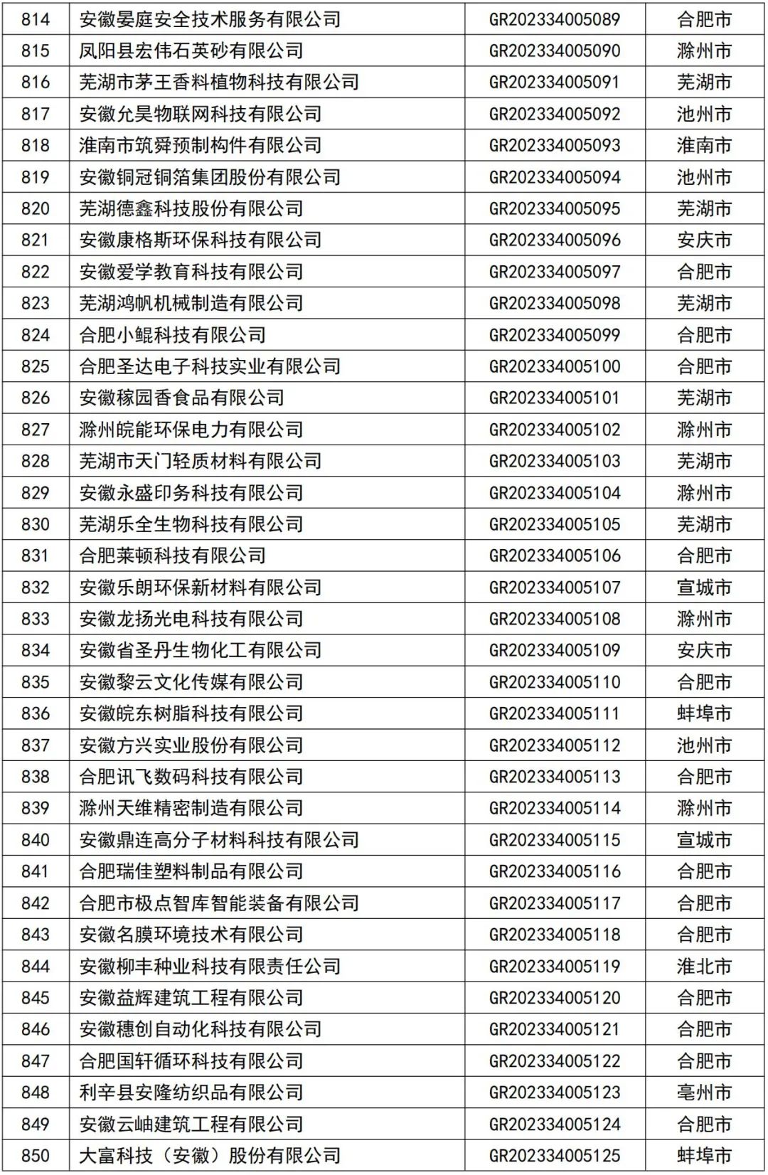 关于公布安徽省2023年第二批高新技术企业认定名单的通知