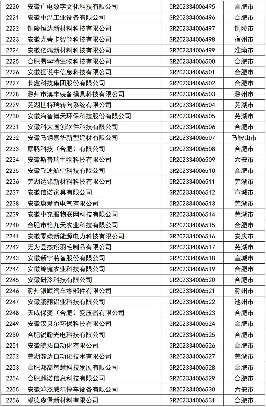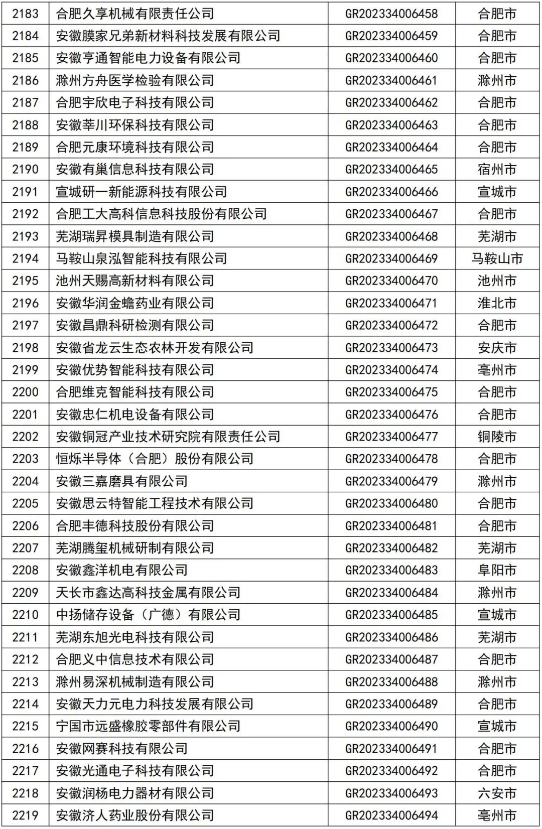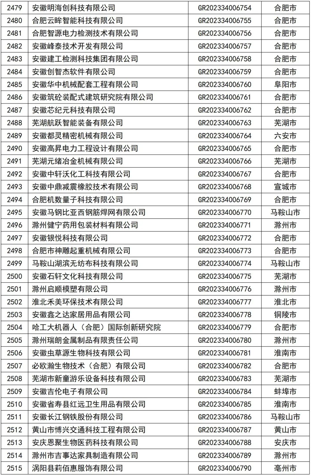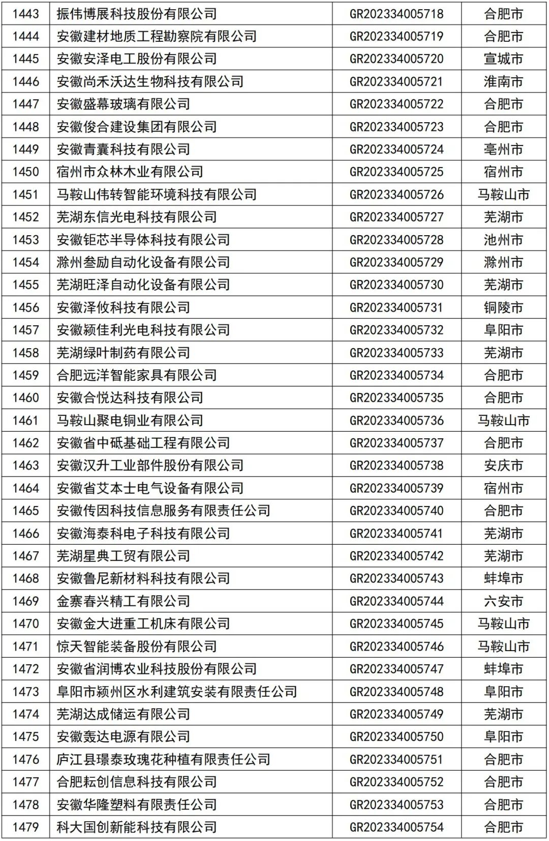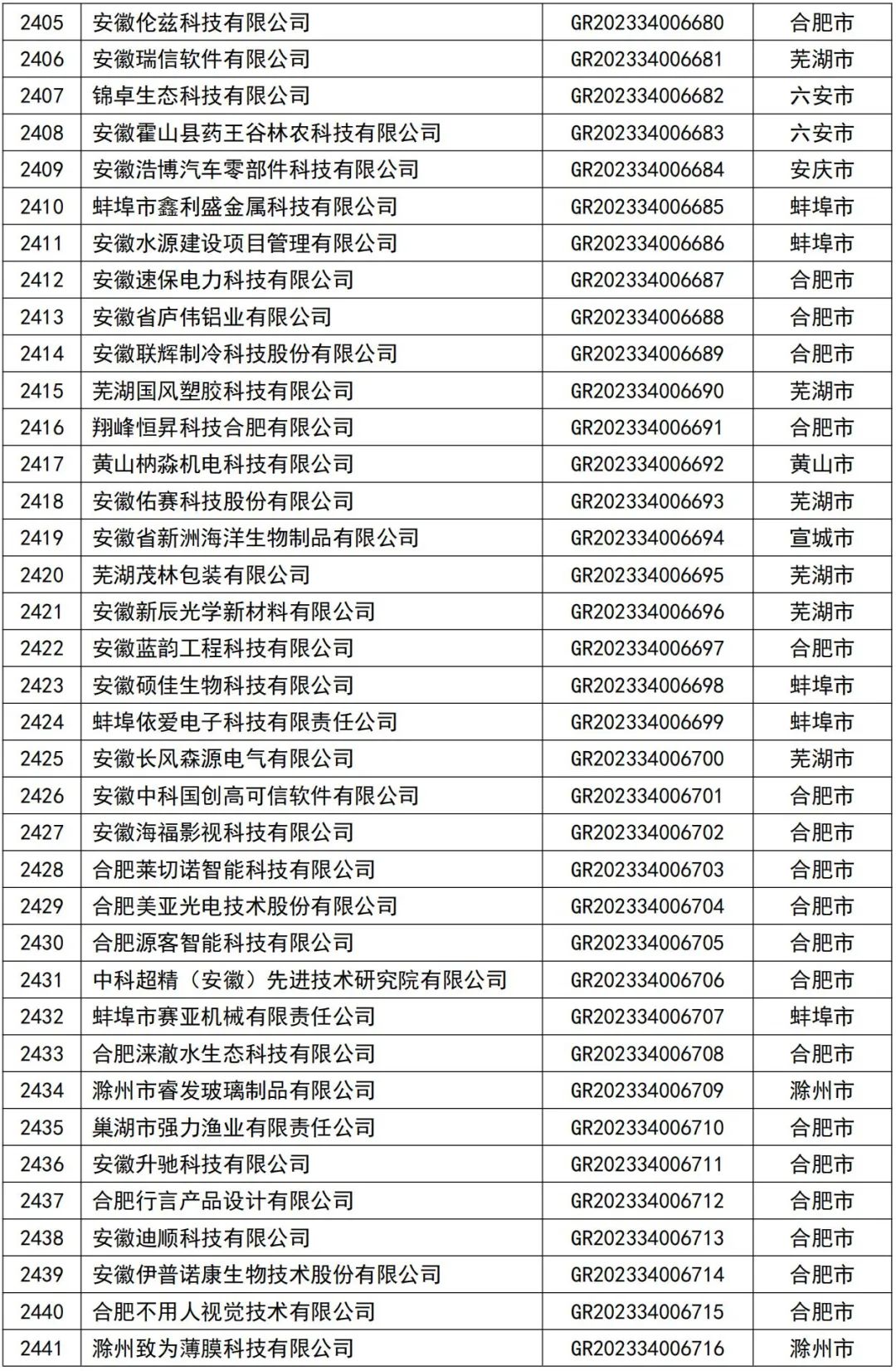关于公布安徽省2023年第二批高新技术企业认定名单的通知