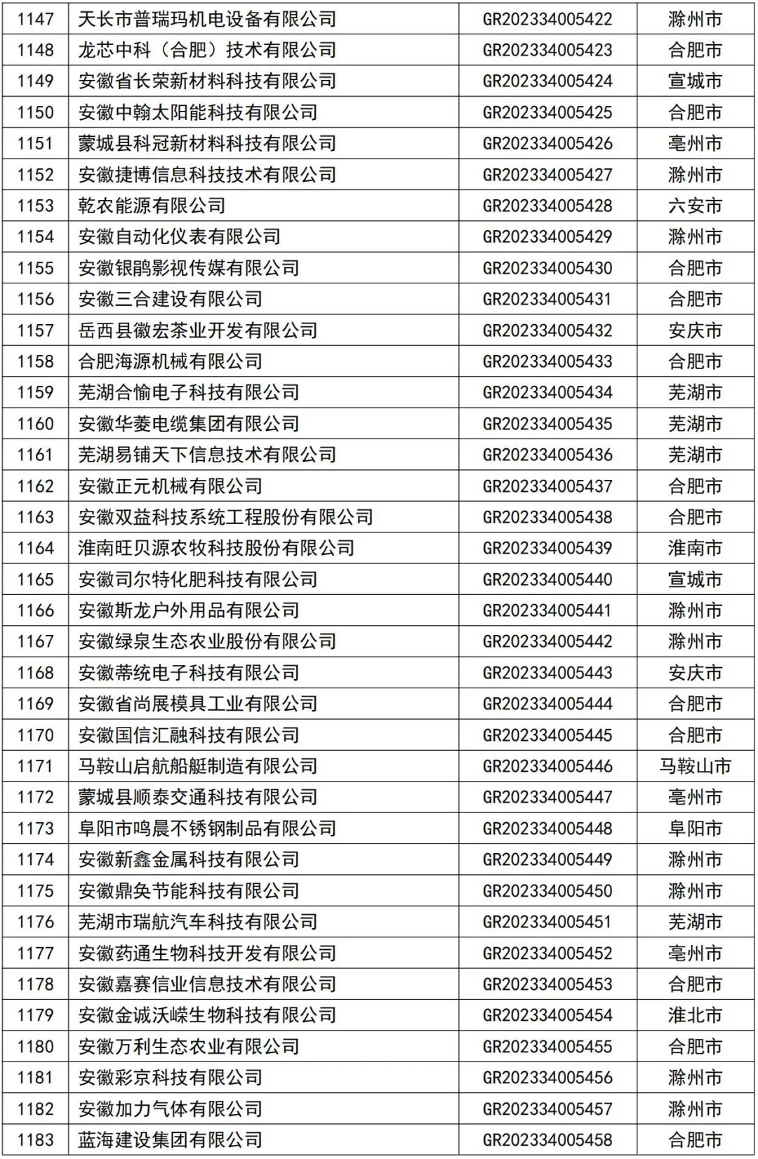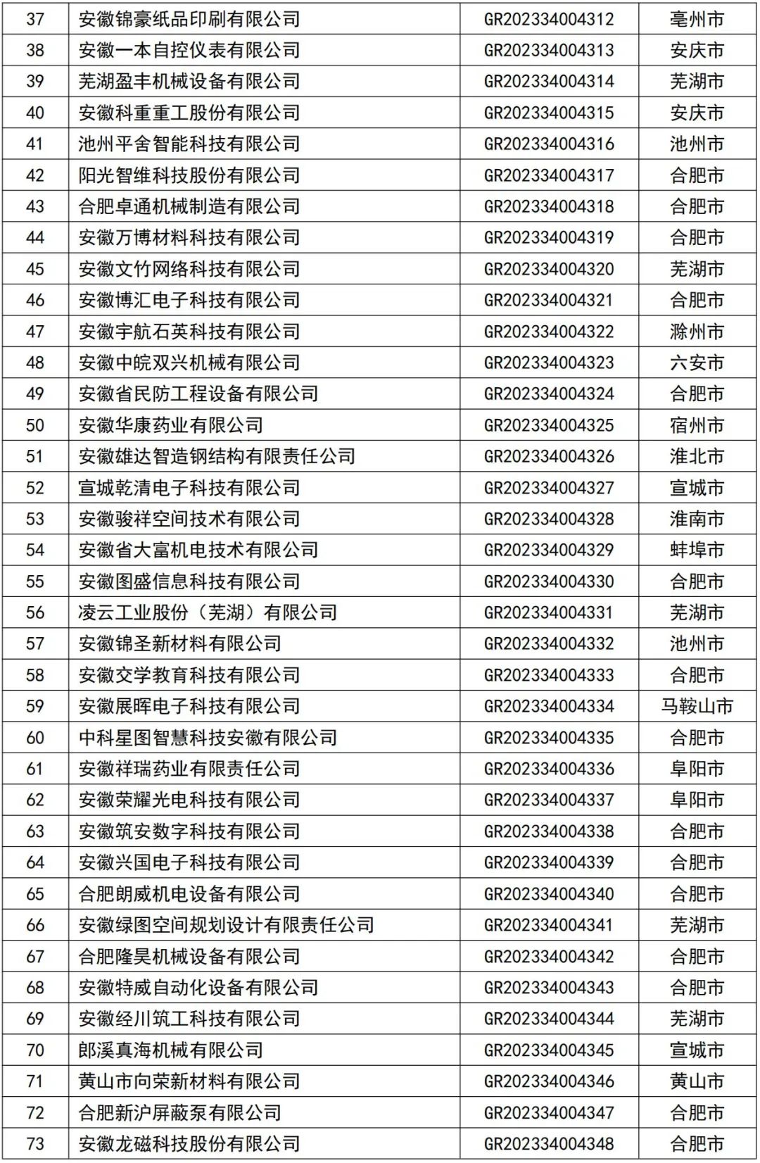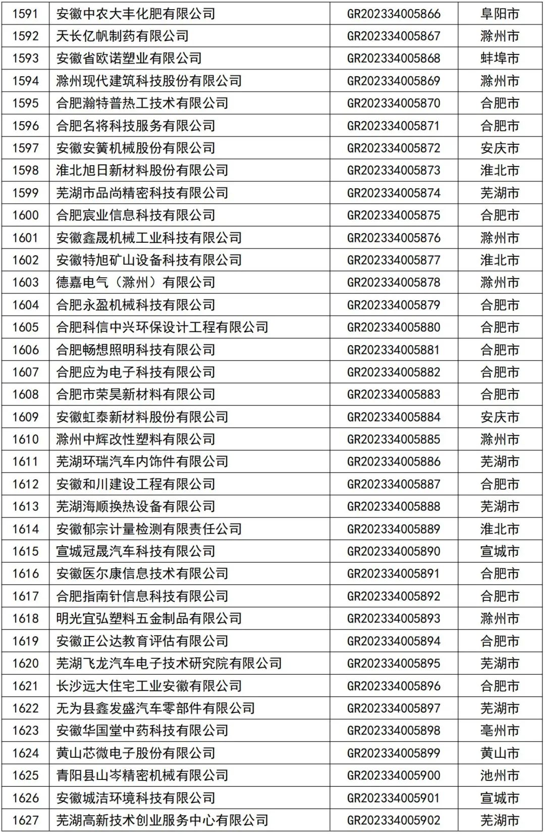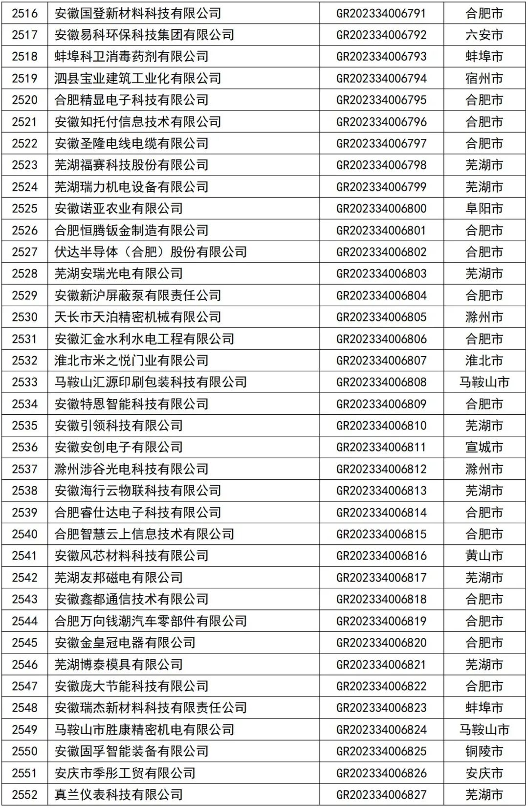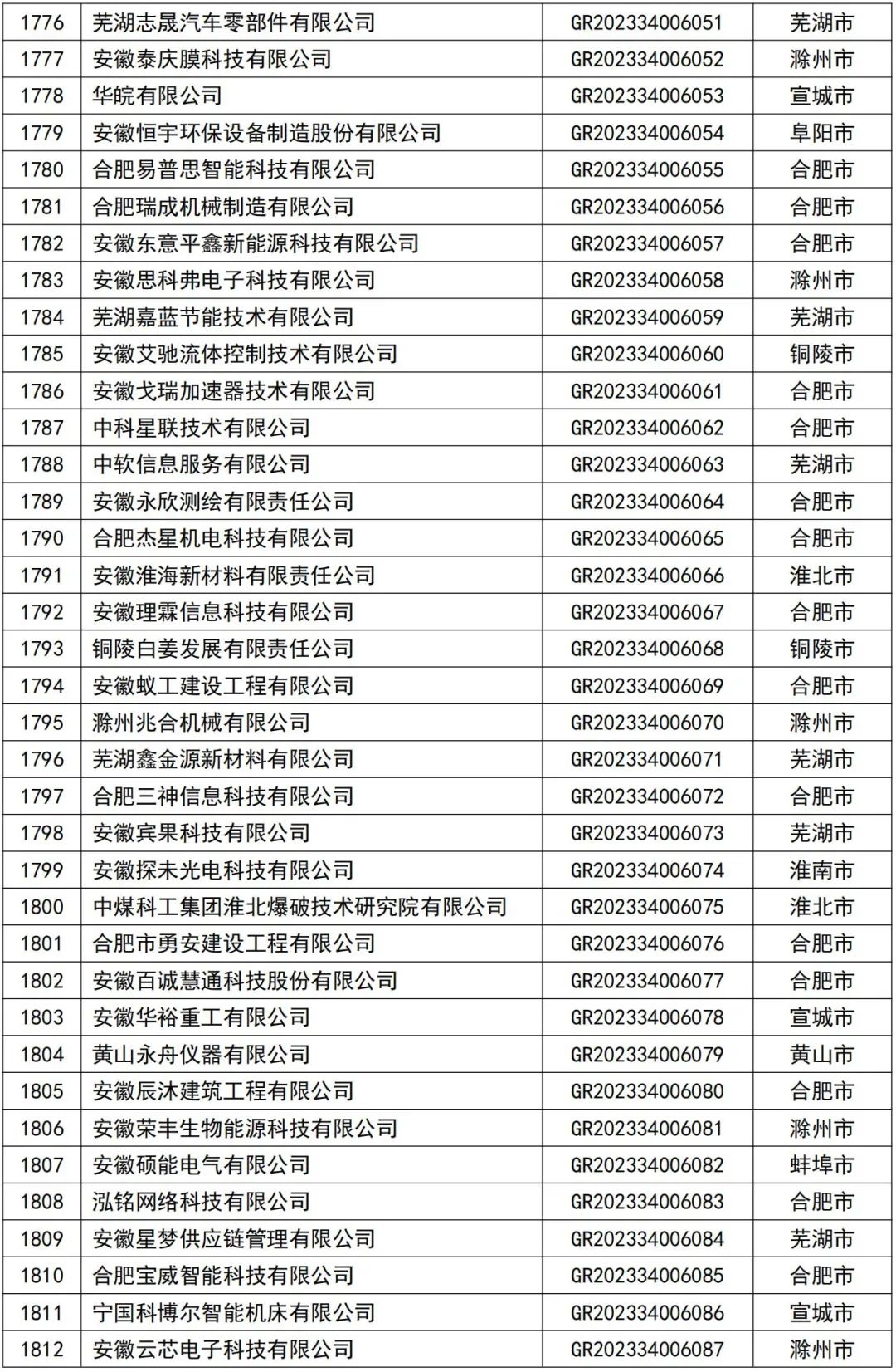 关于公布安徽省2023年第二批高新技术企业认定名单的通知