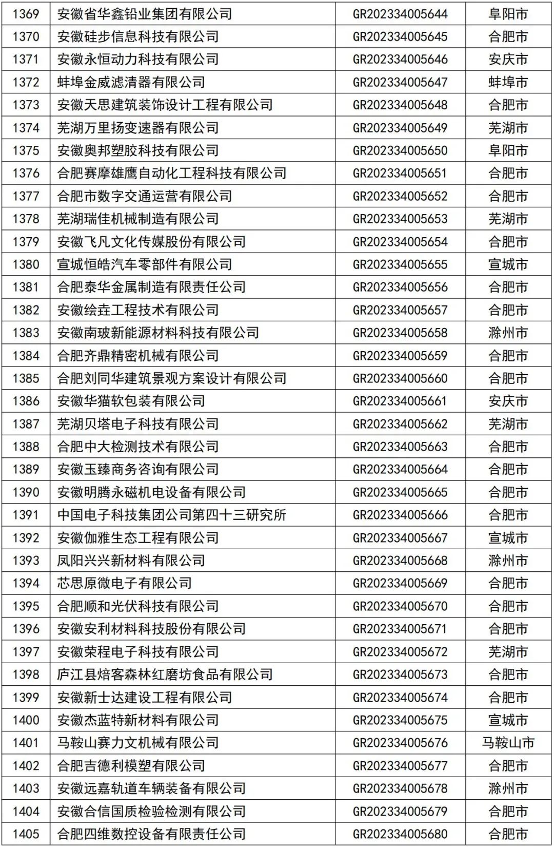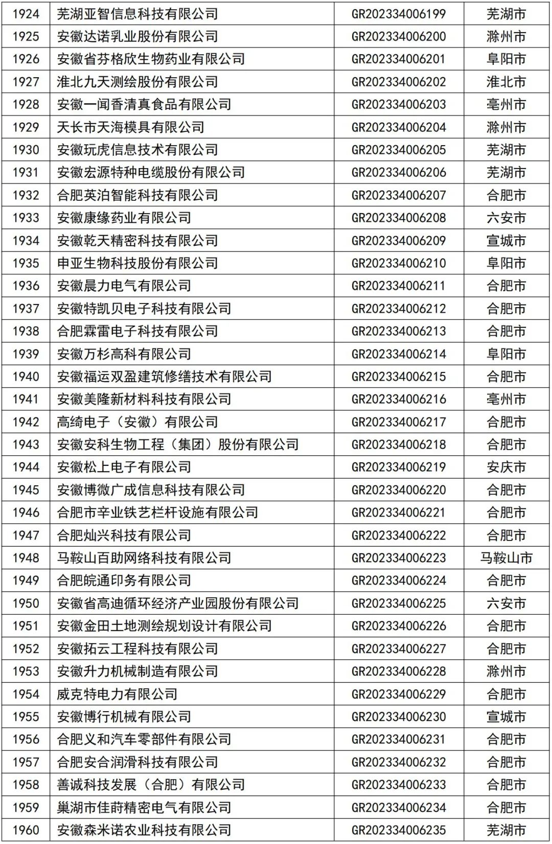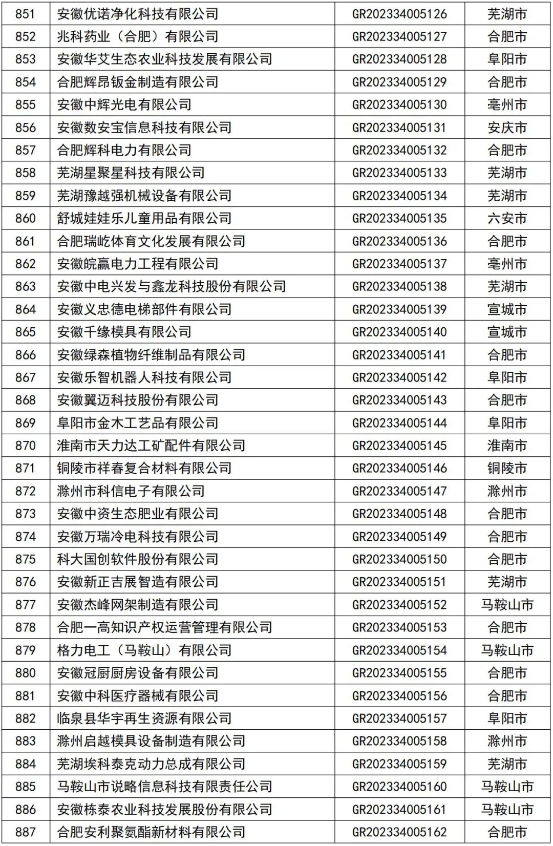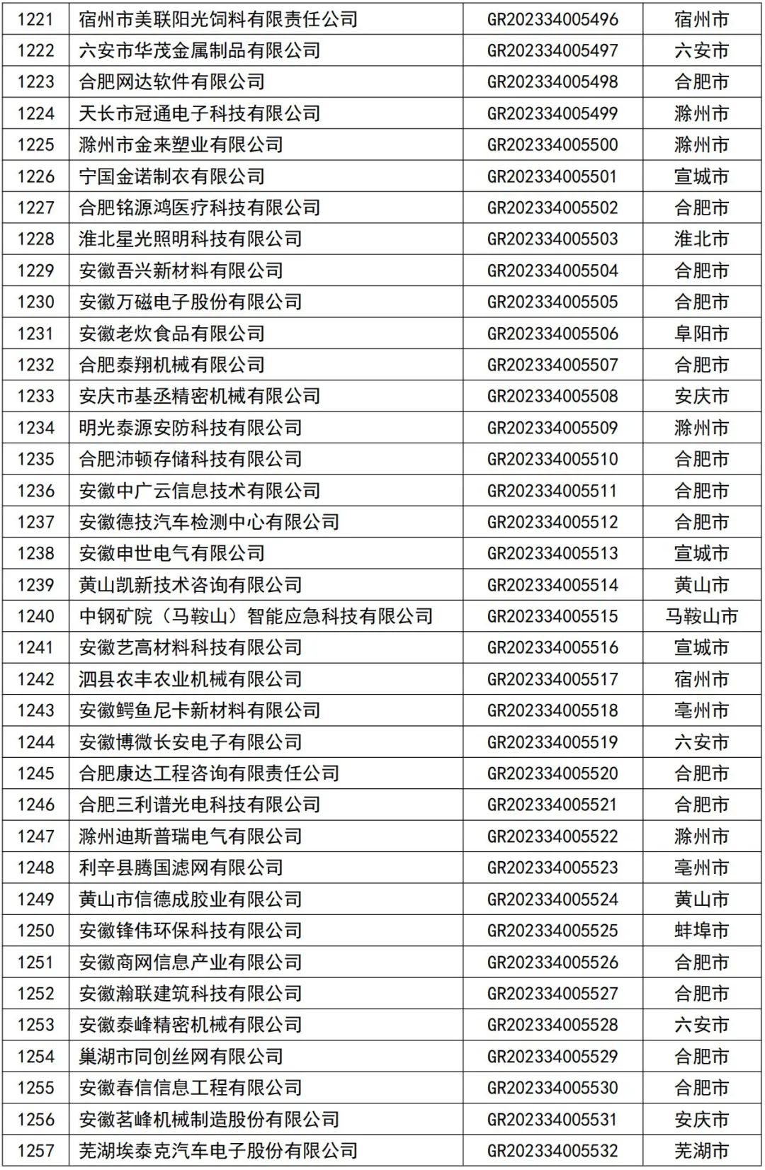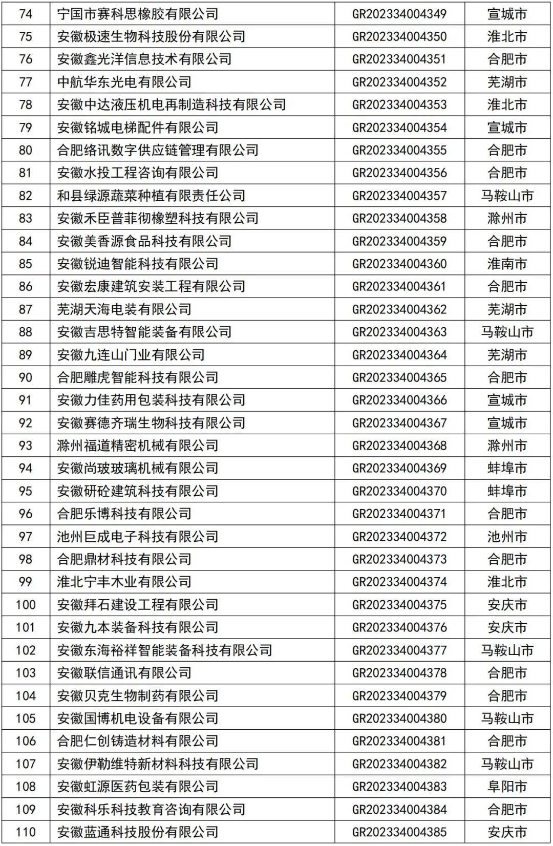 关于公布安徽省2023年第二批高新技术企业认定名单的通知