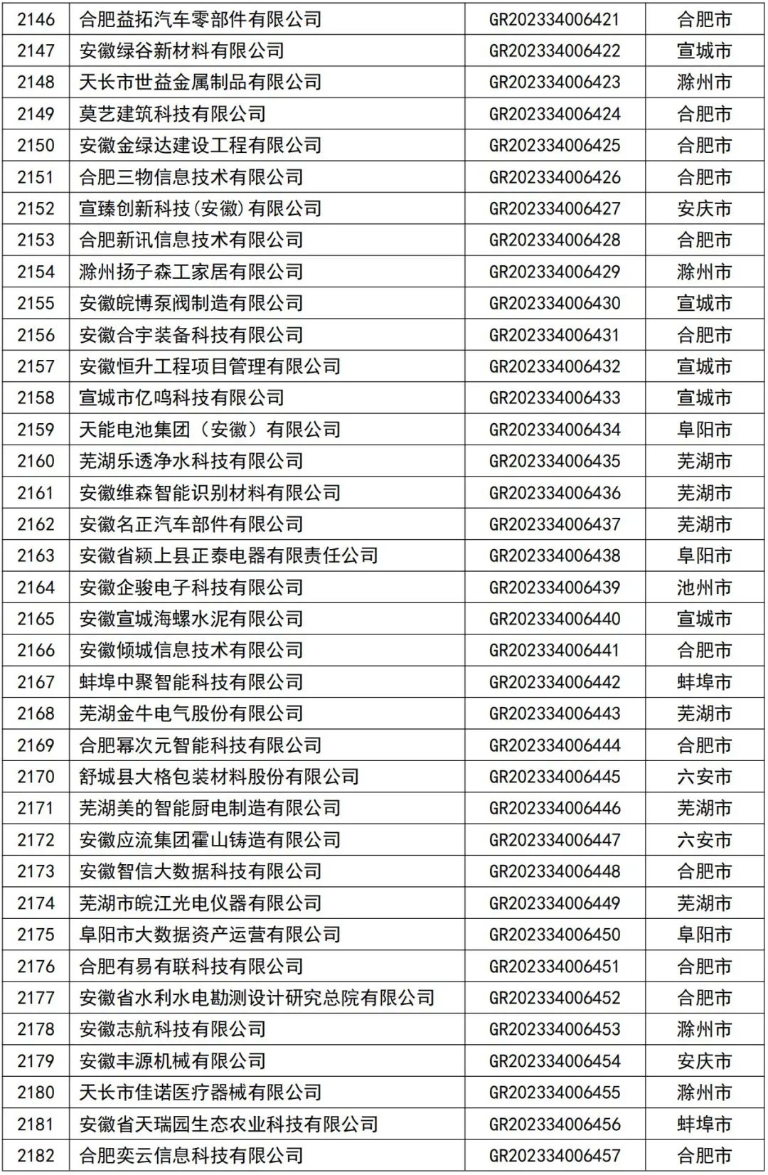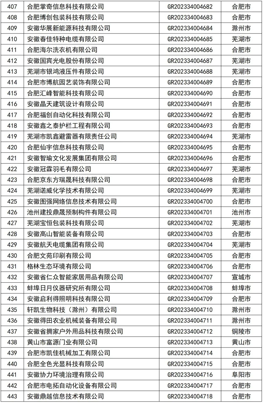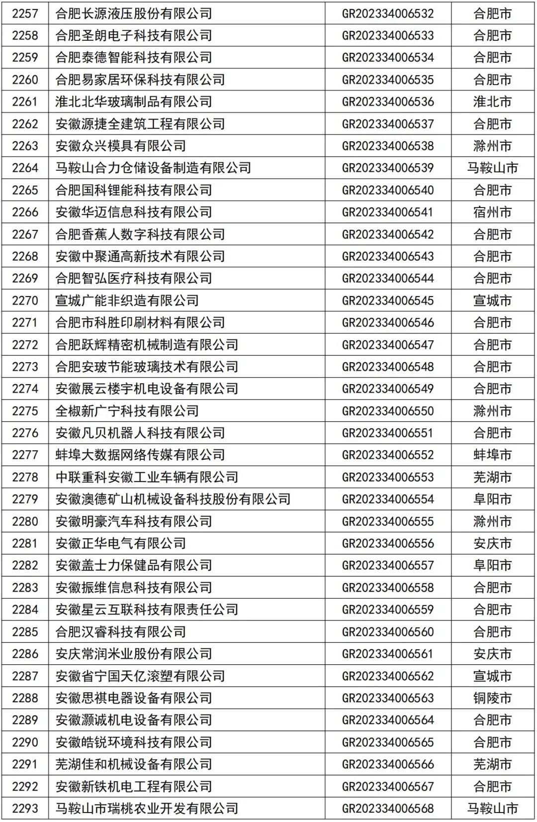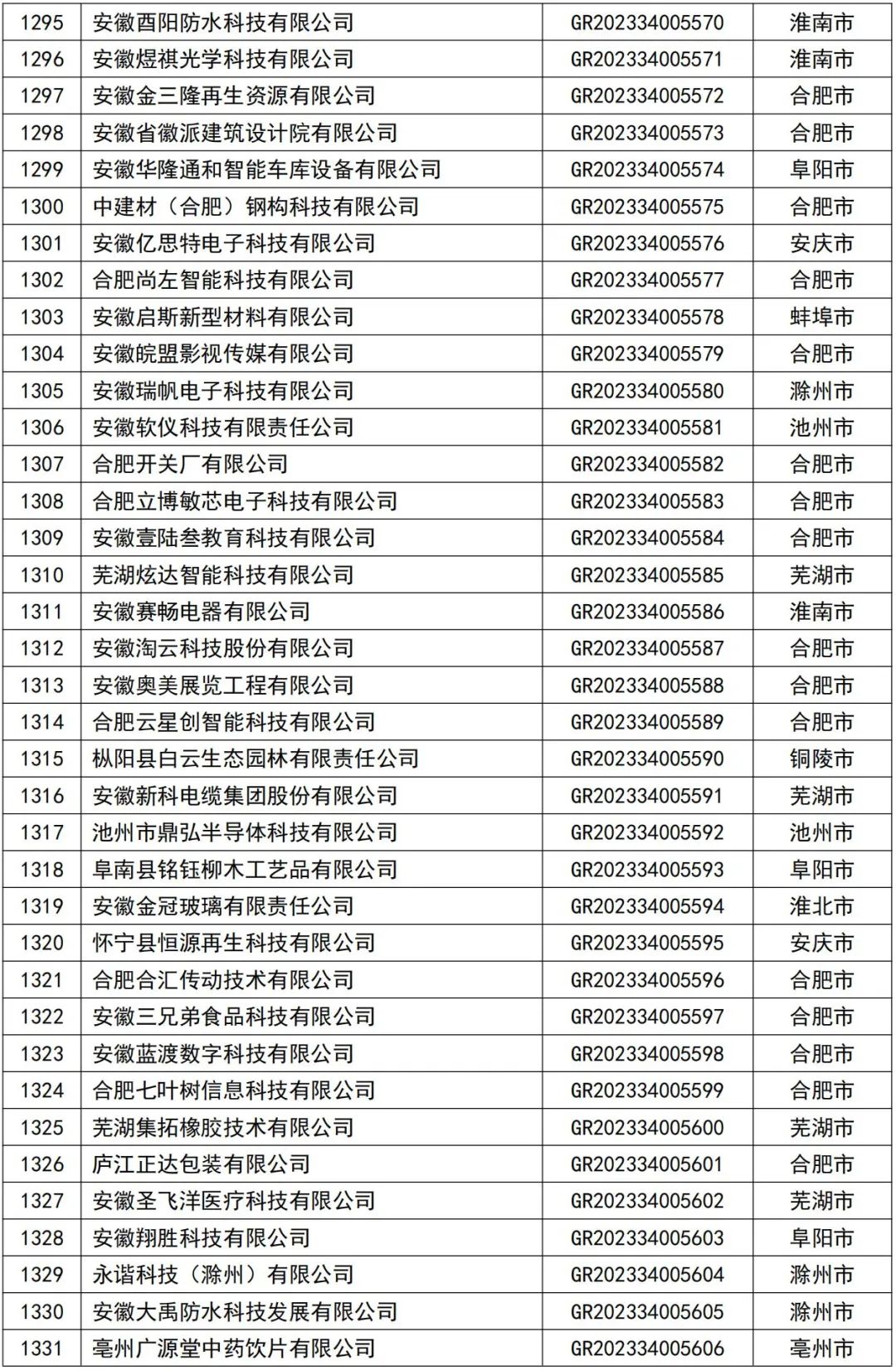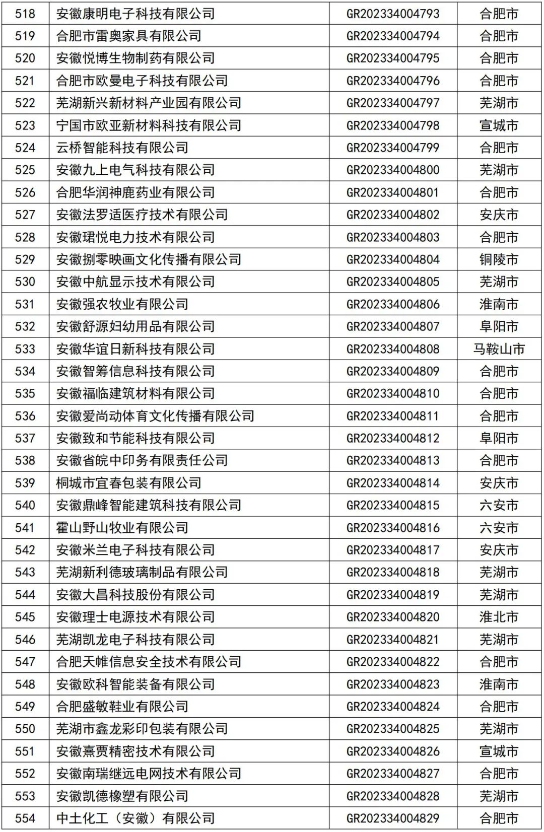 关于公布安徽省2023年第二批高新技术企业认定名单的通知