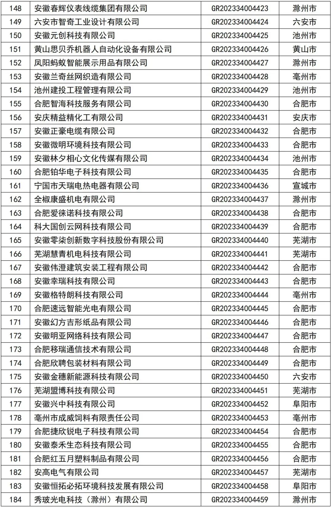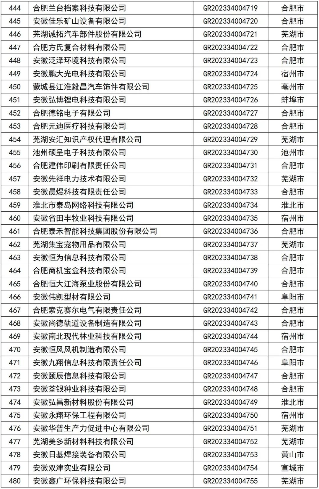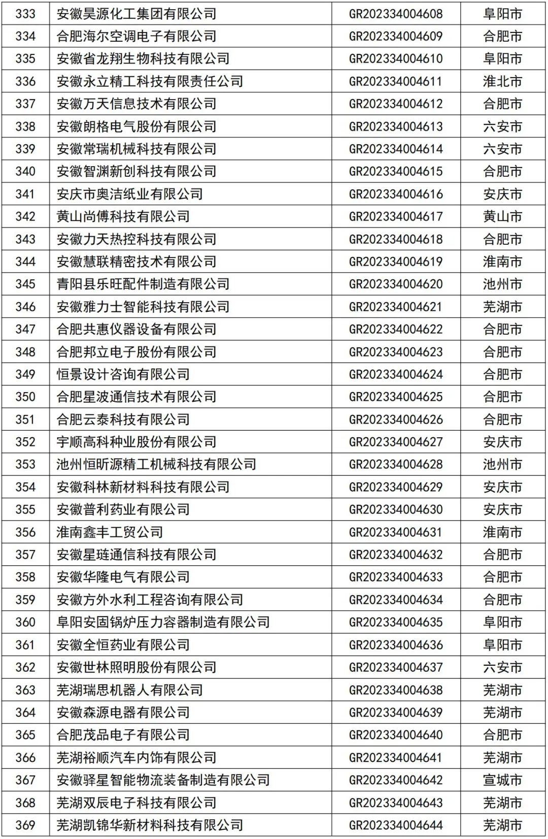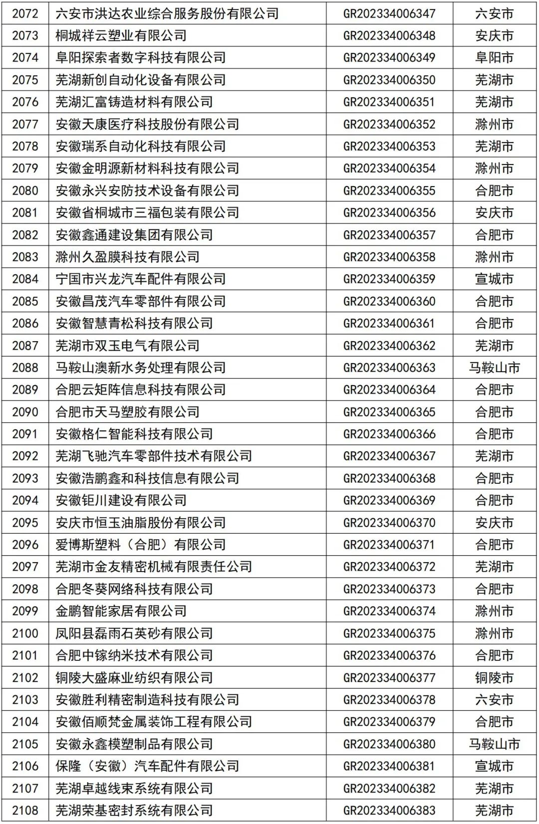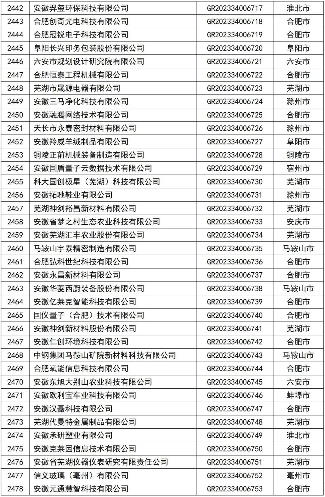 关于公布安徽省2023年第二批高新技术企业认定名单的通知