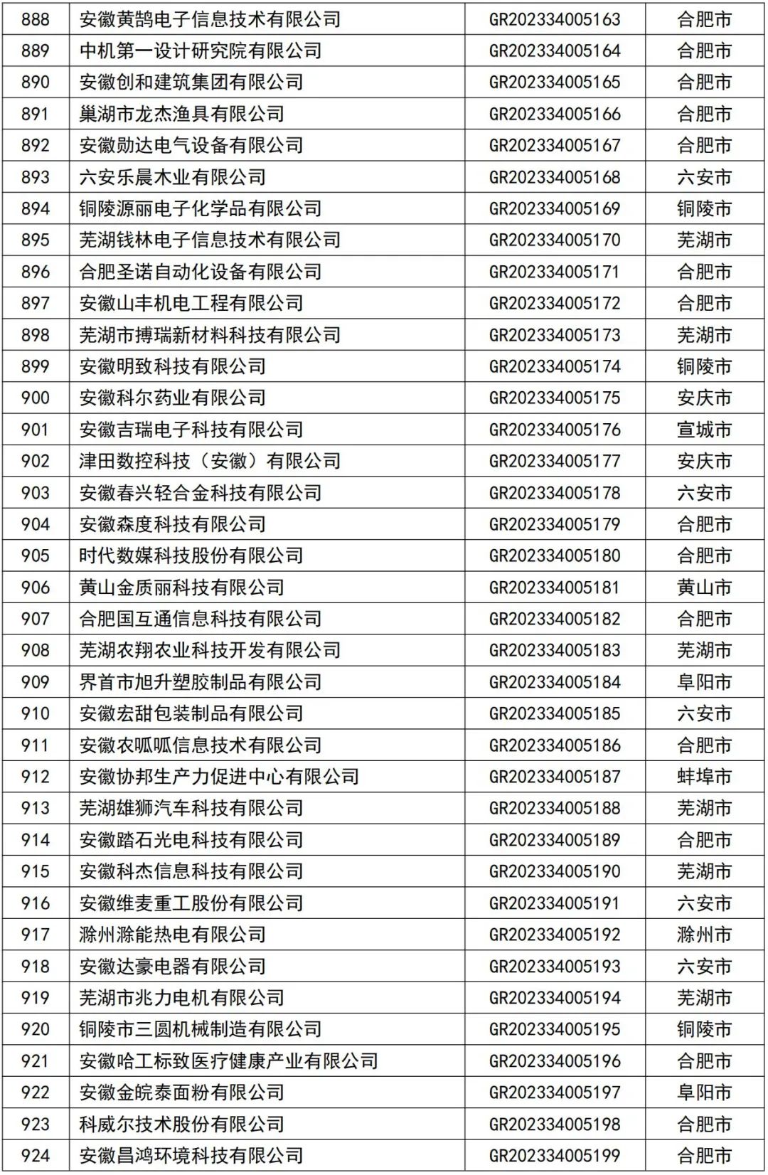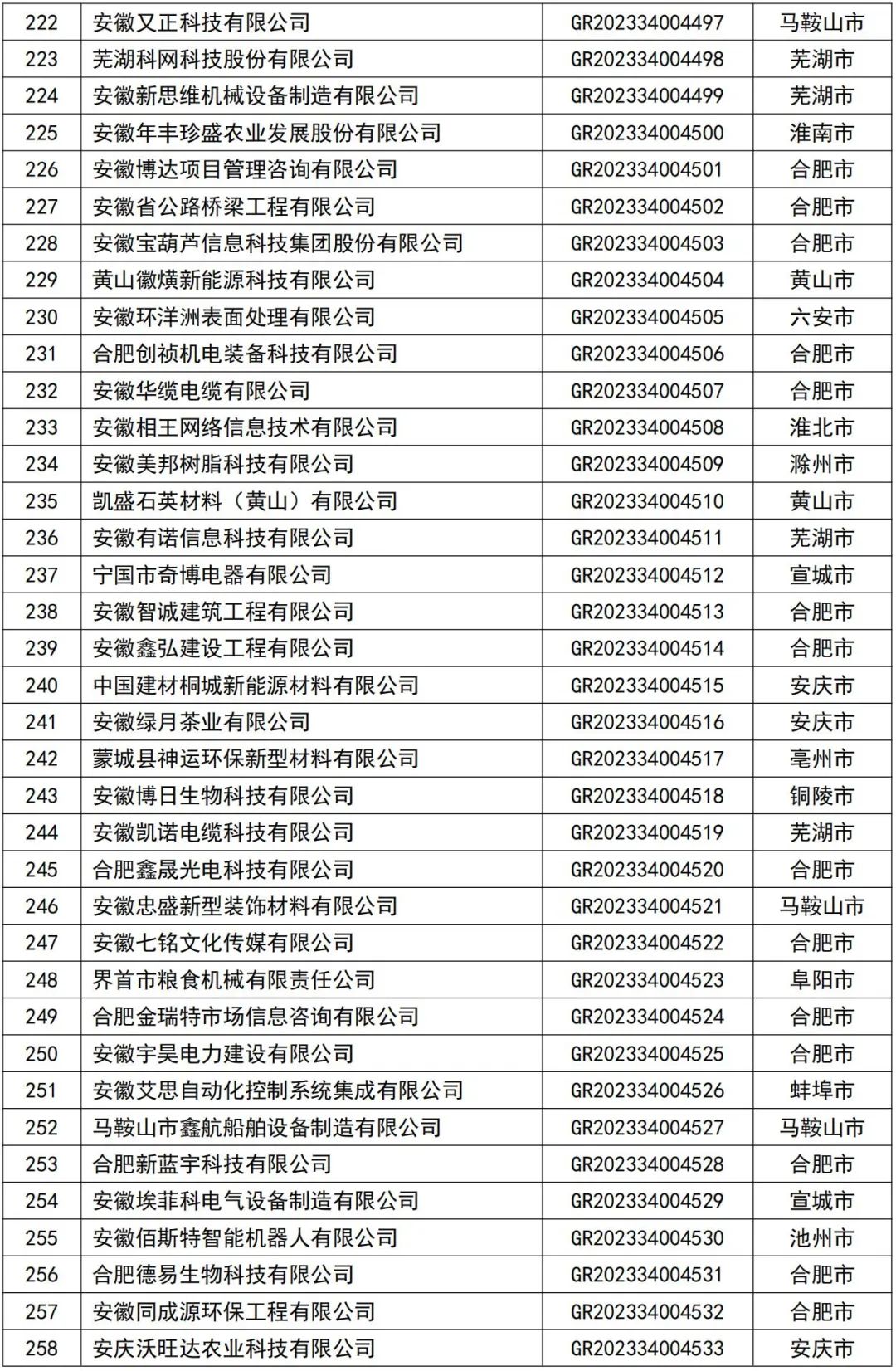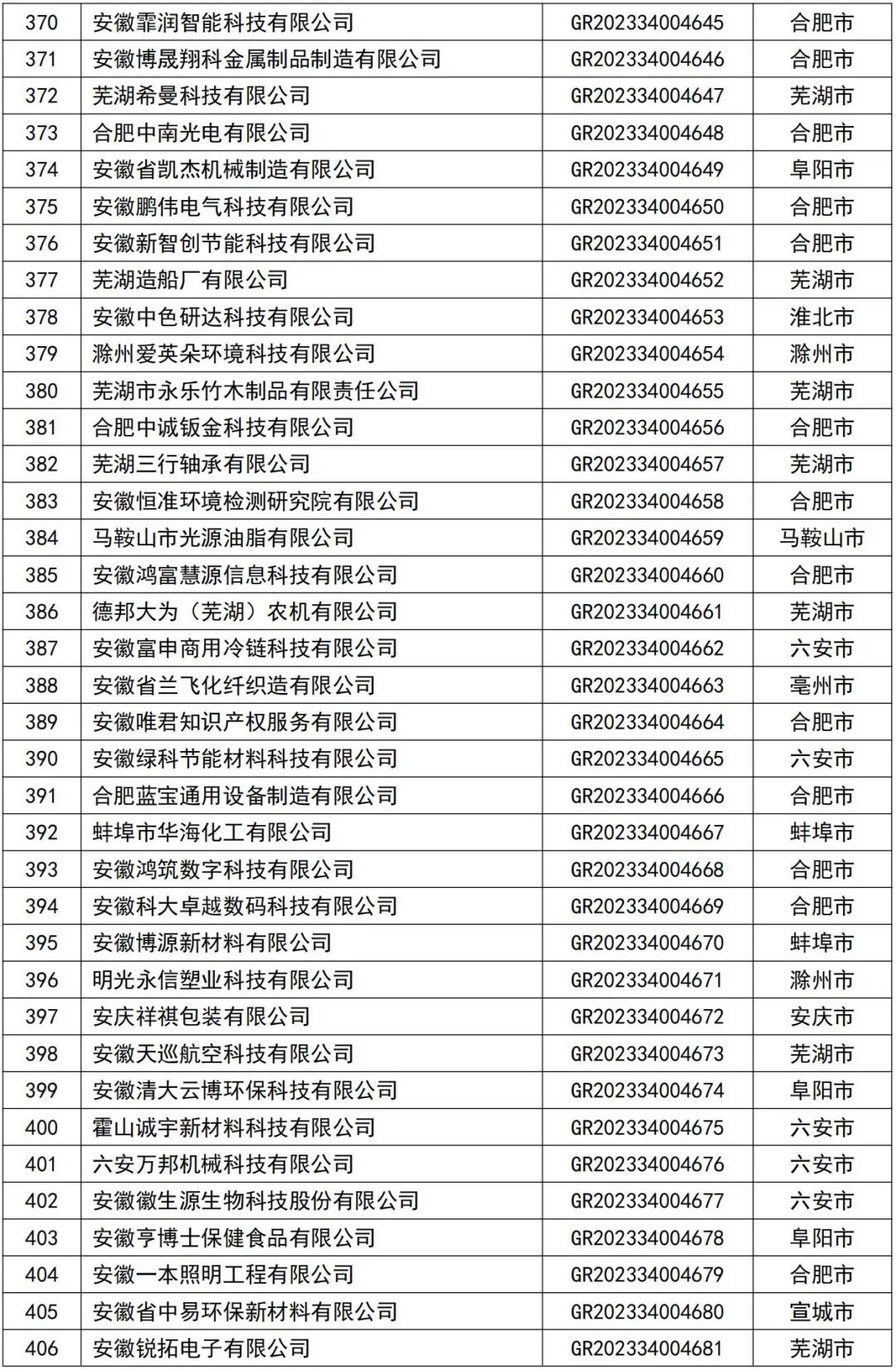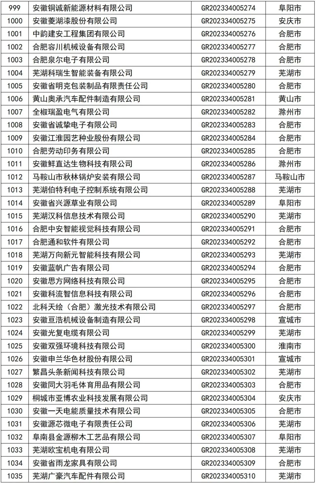 关于公布安徽省2023年第二批高新技术企业认定名单的通知