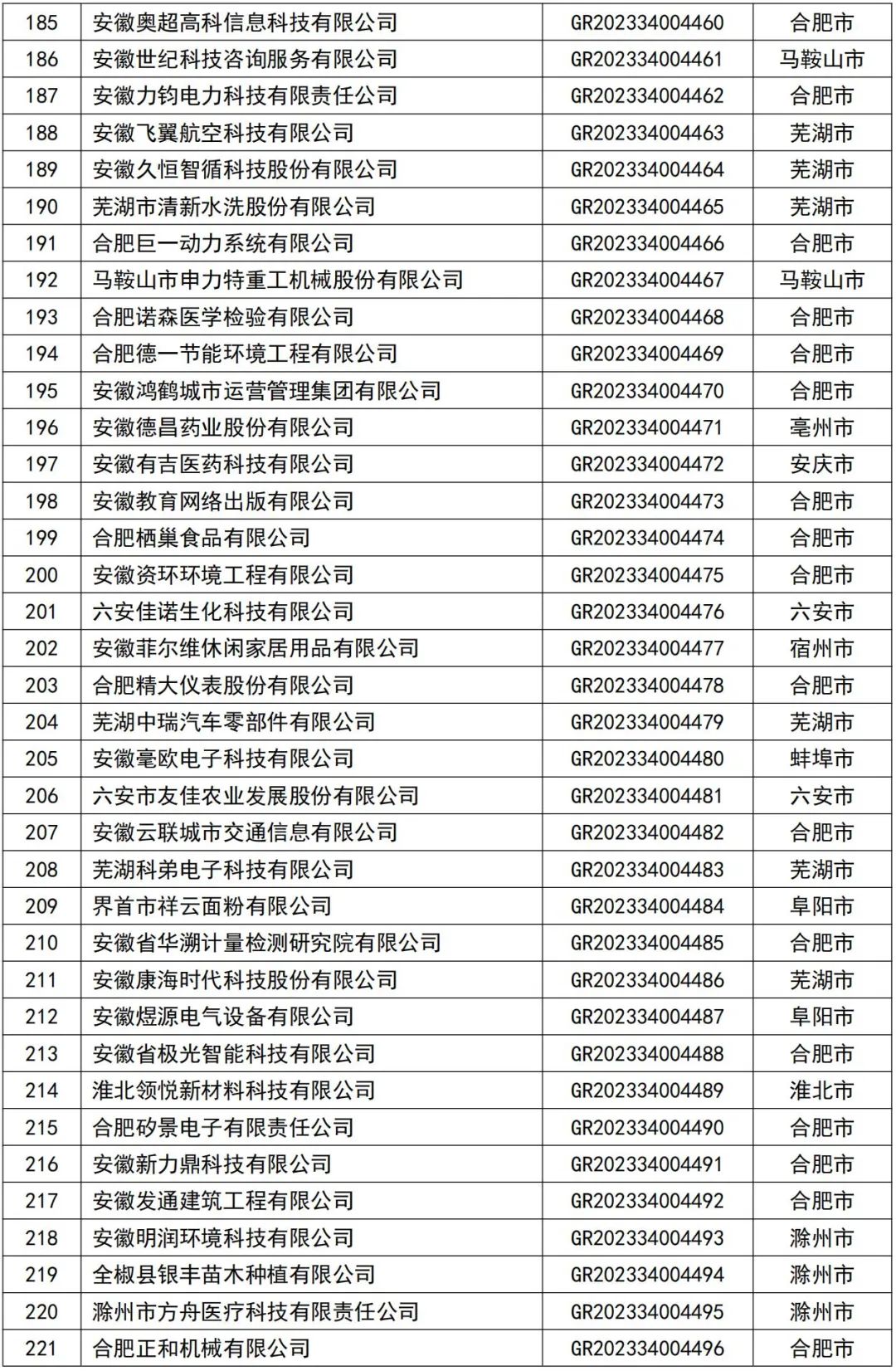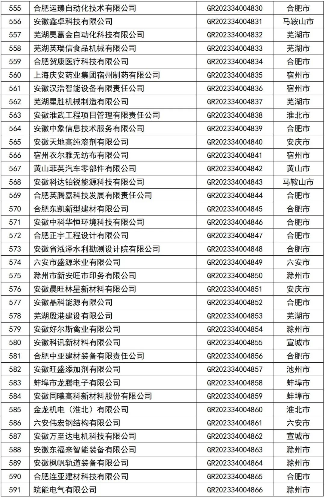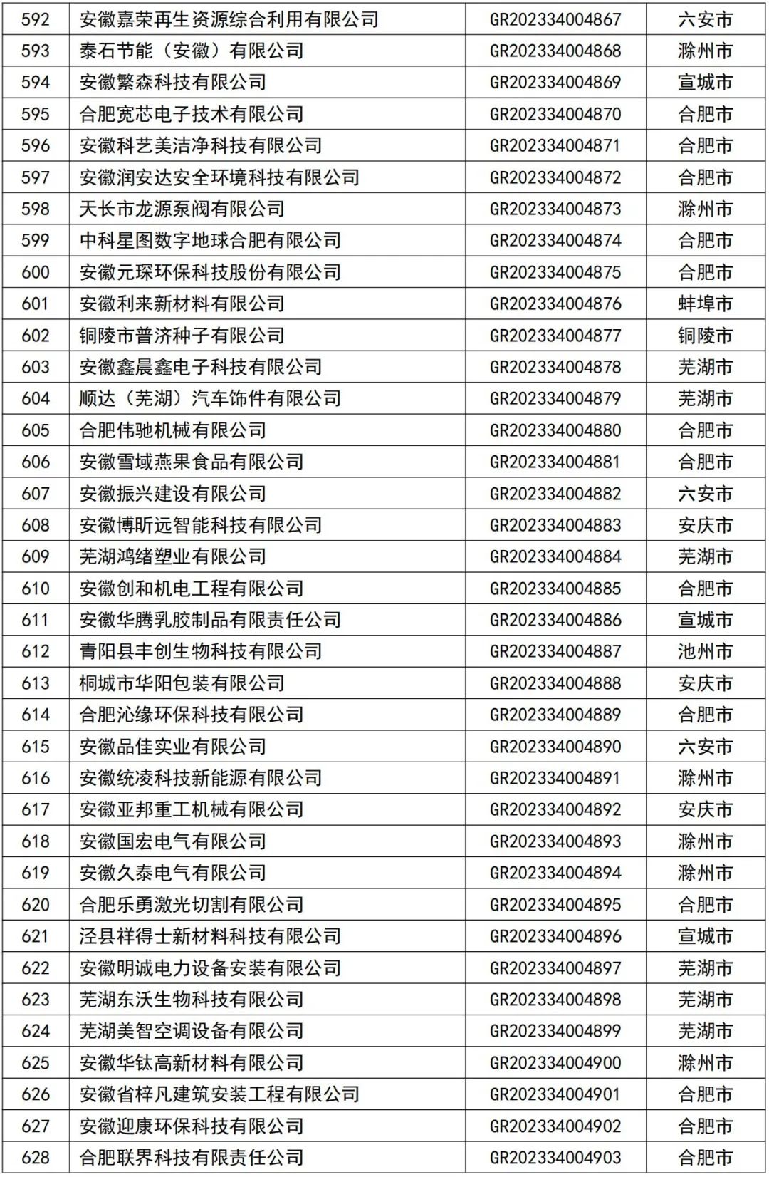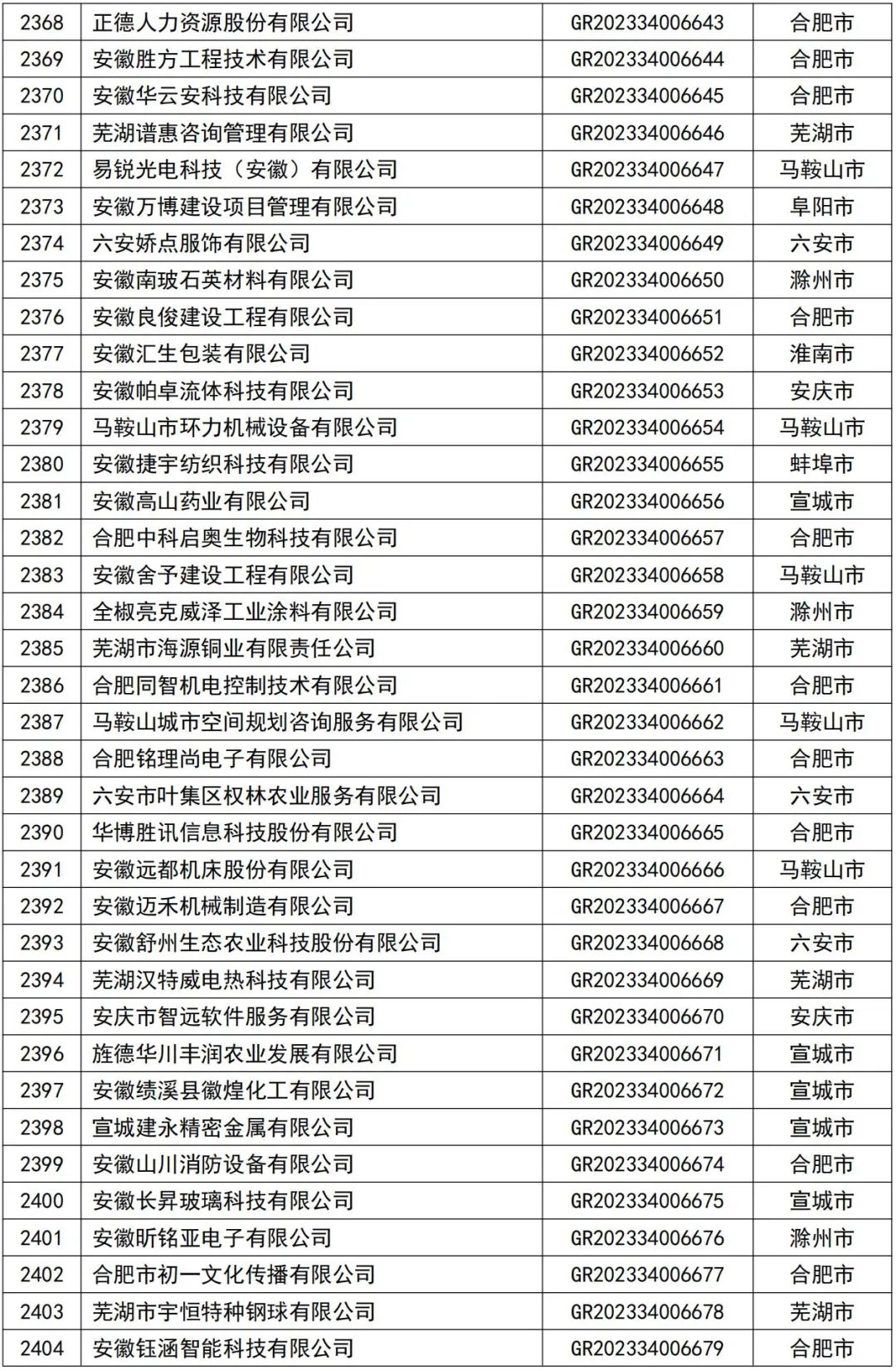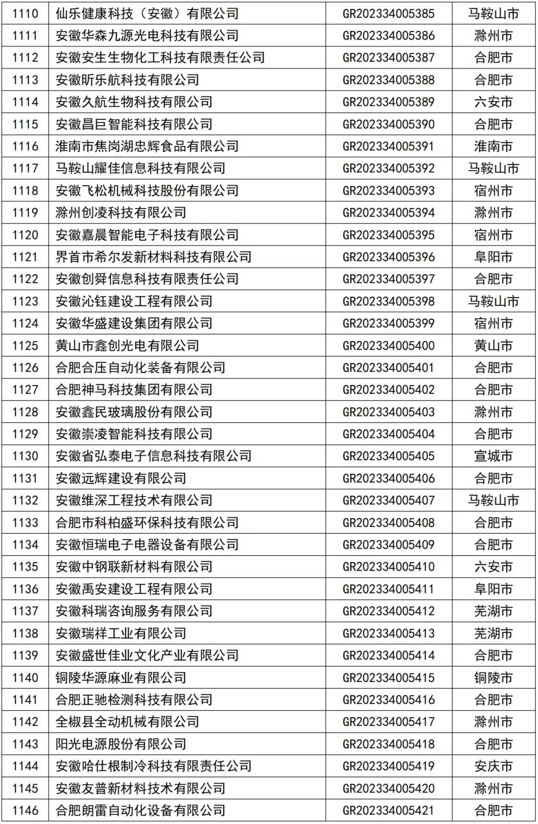 关于公布安徽省2023年第二批高新技术企业认定名单的通知
