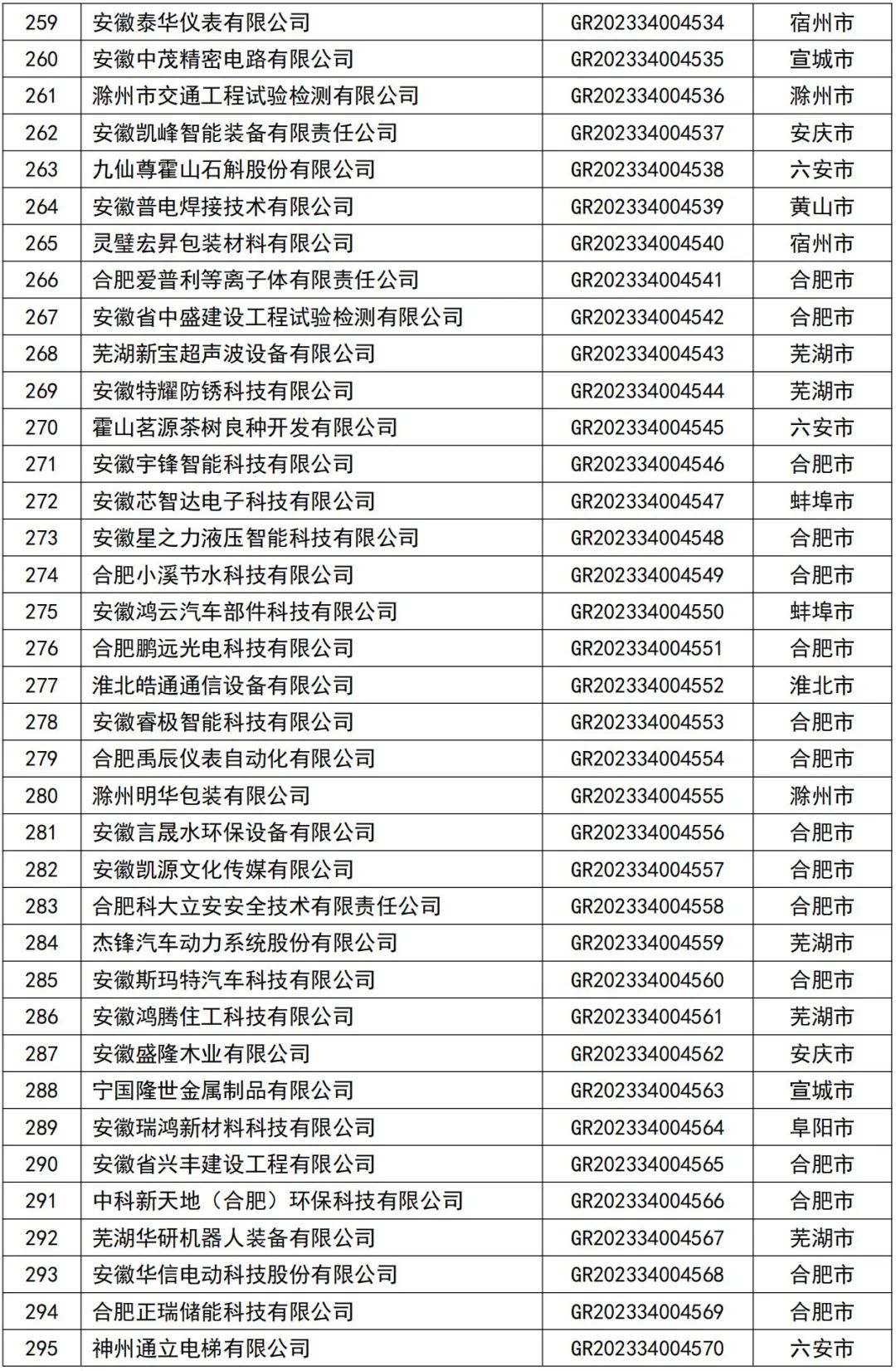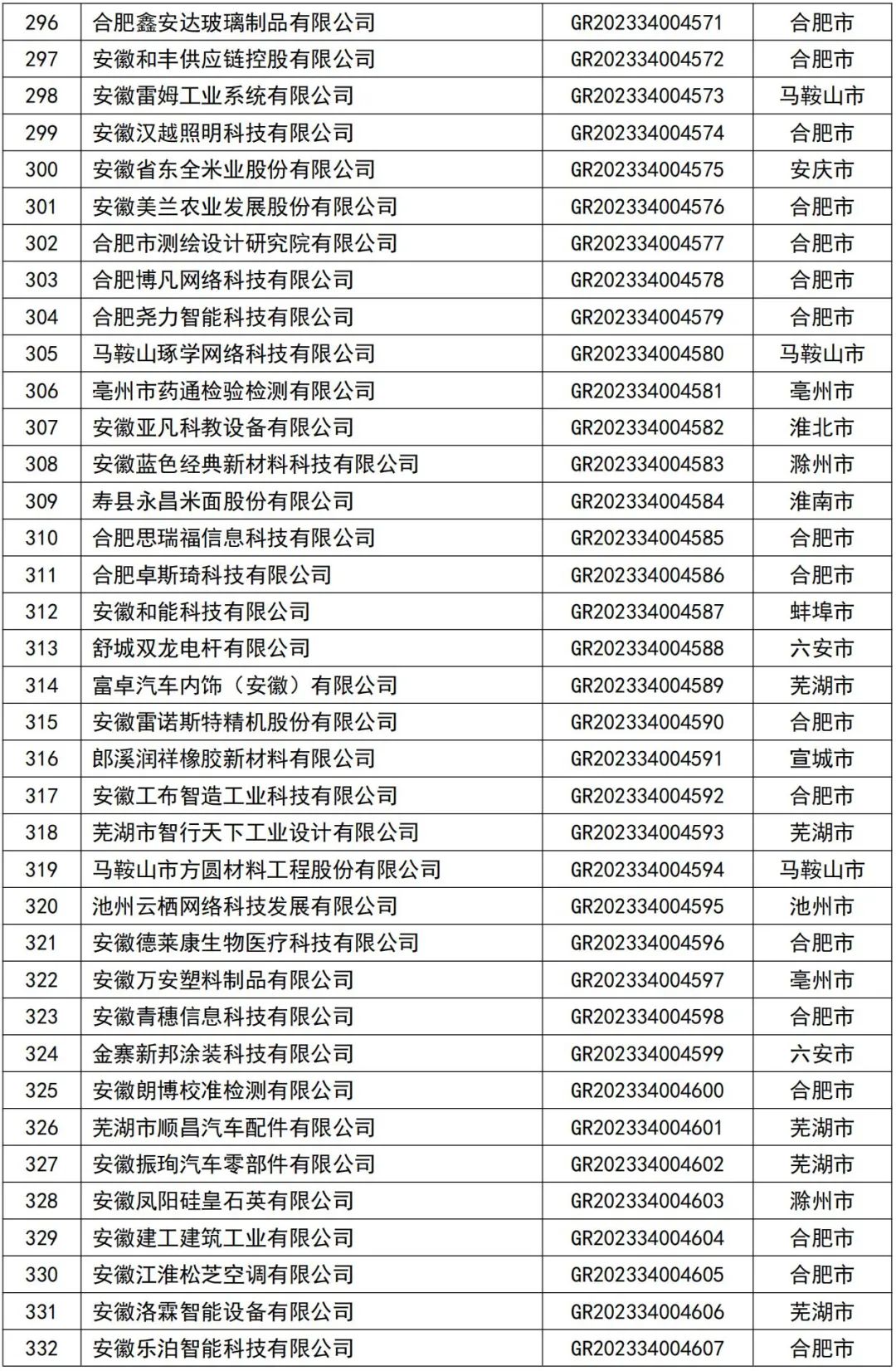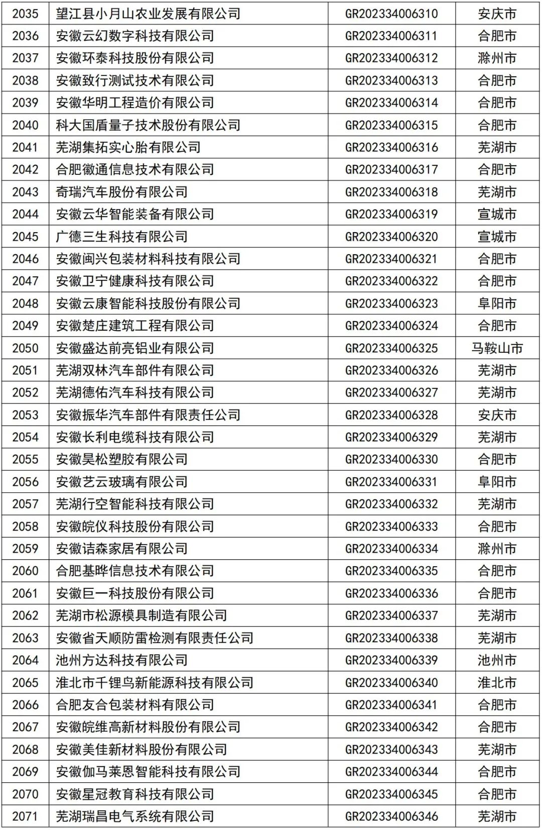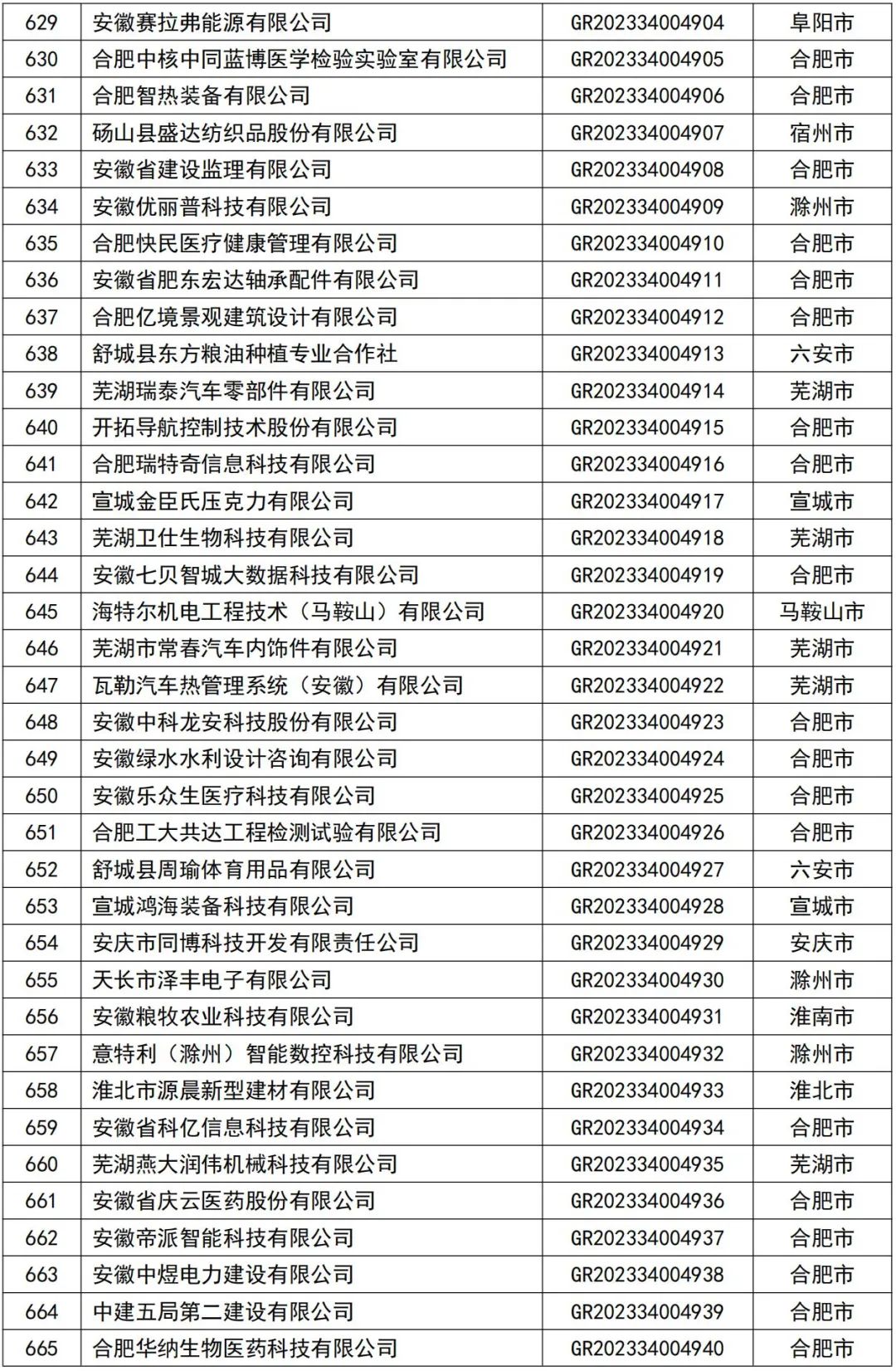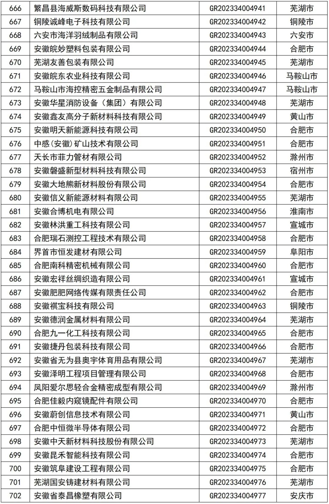 关于公布安徽省2023年第二批高新技术企业认定名单的通知