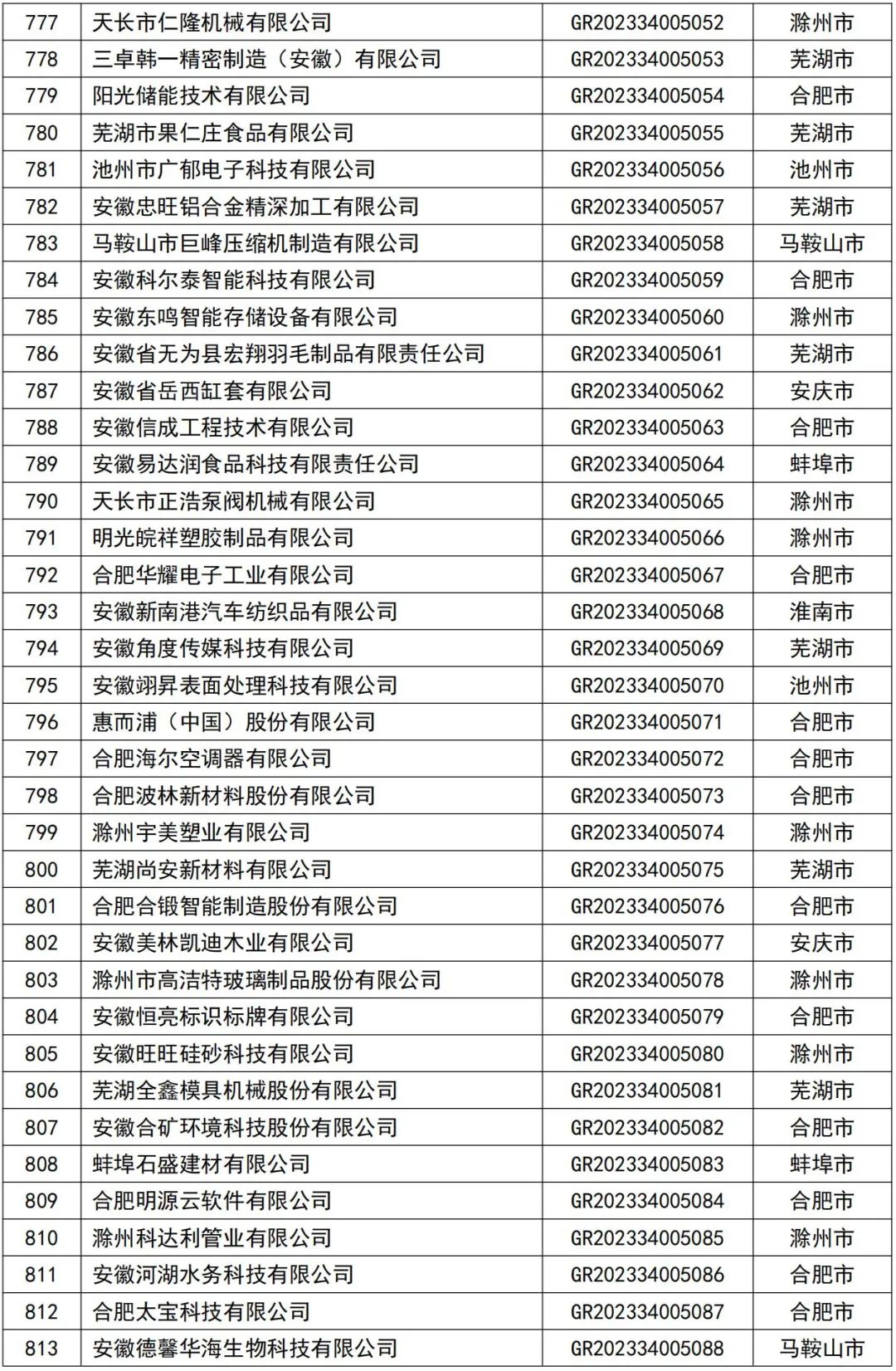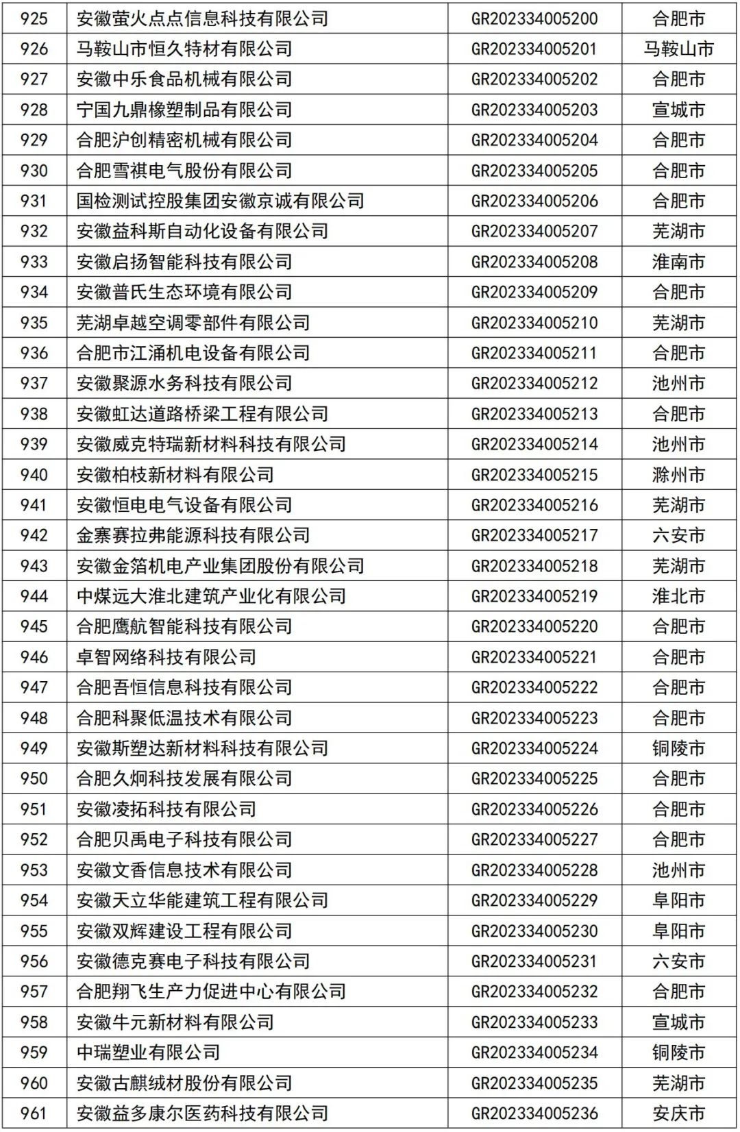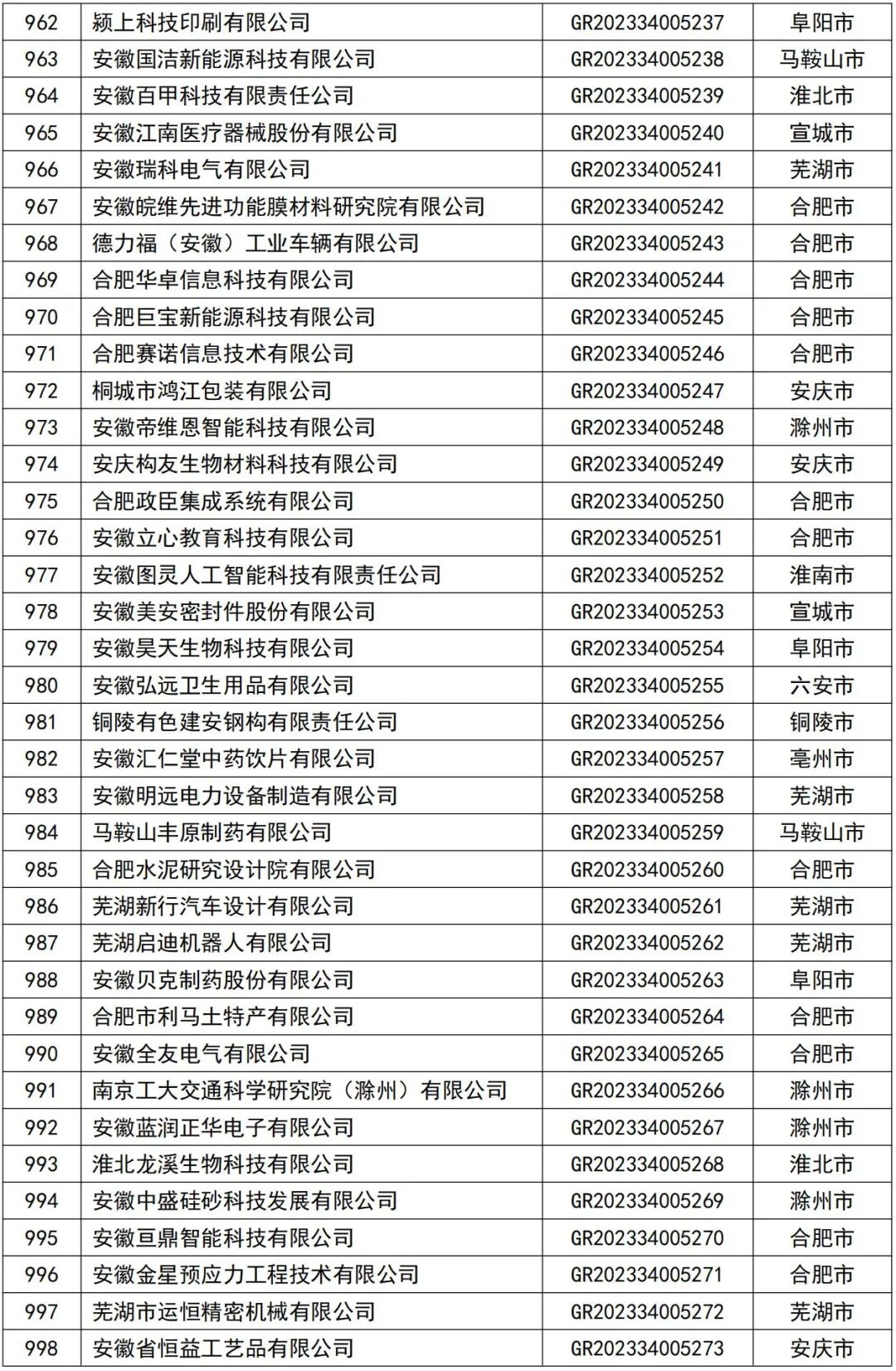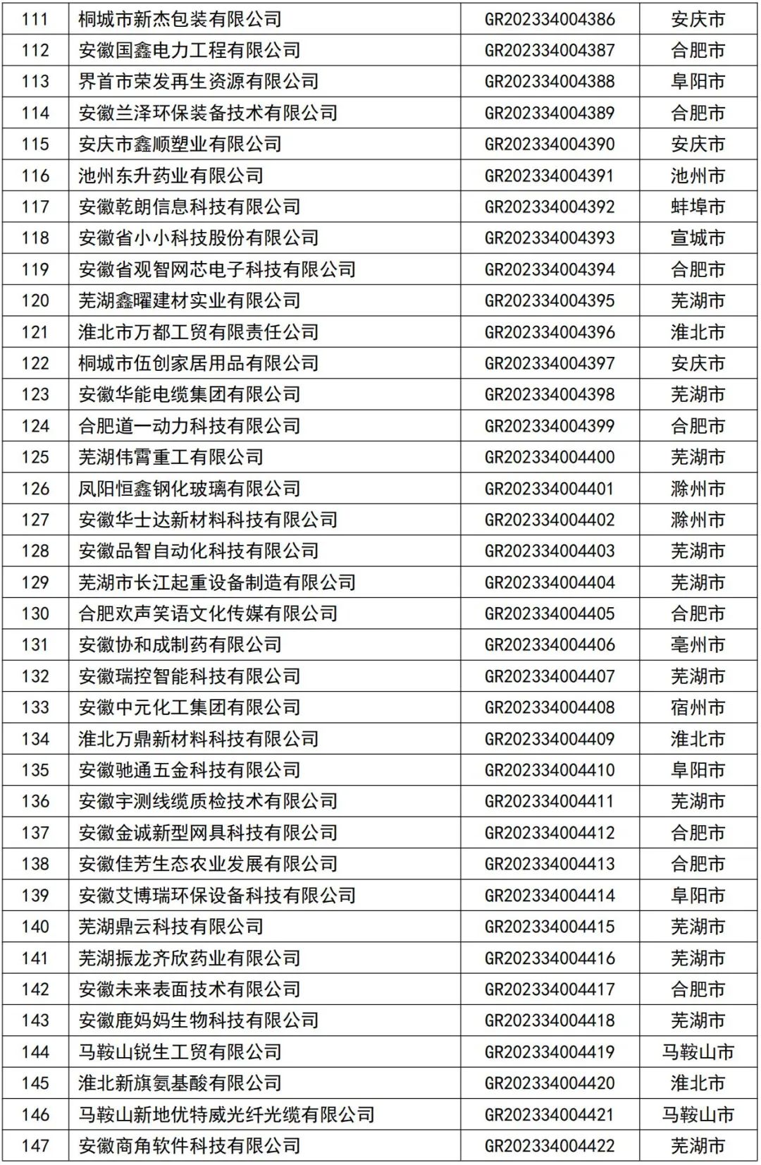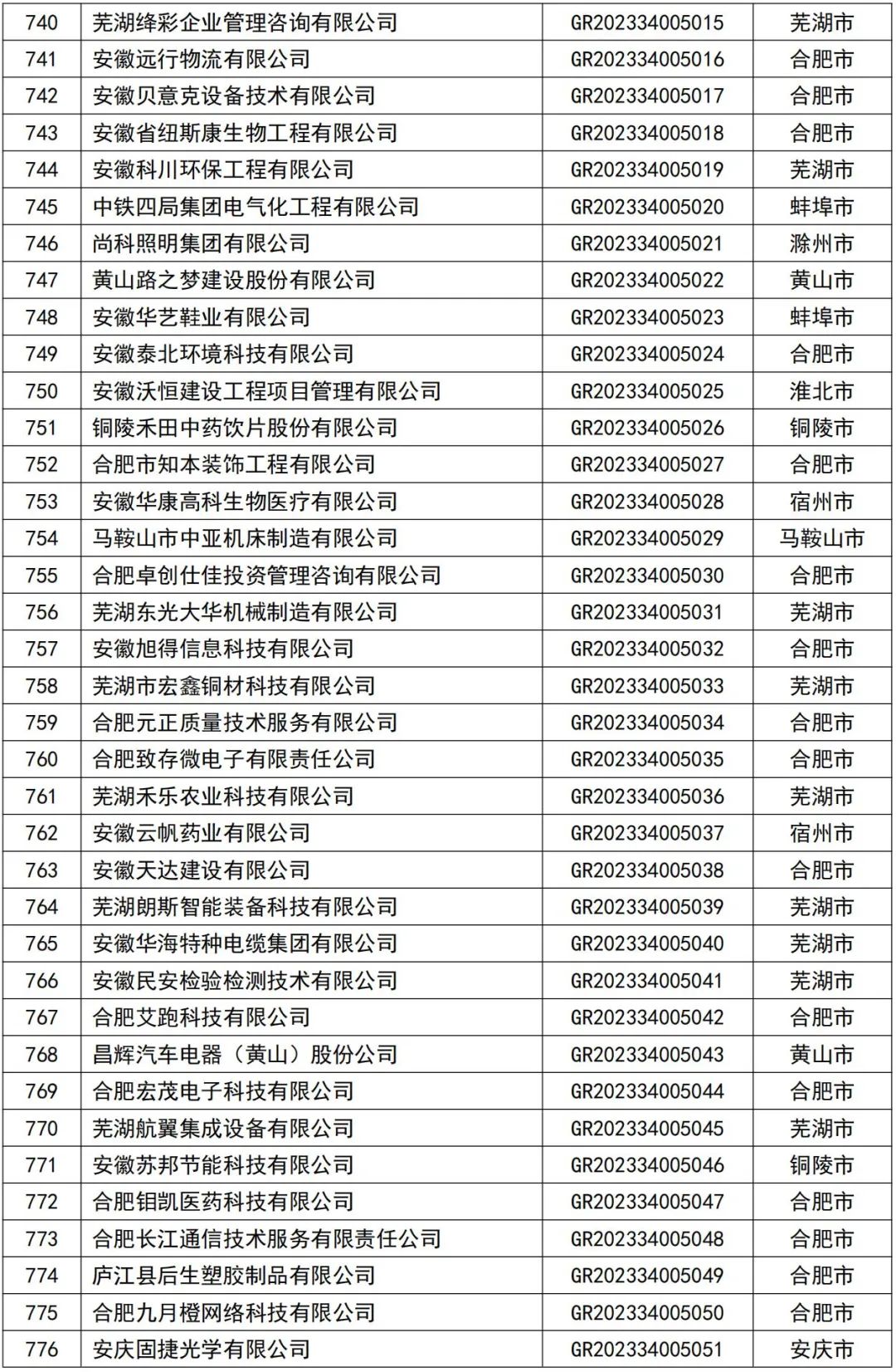 关于公布安徽省2023年第二批高新技术企业认定名单的通知