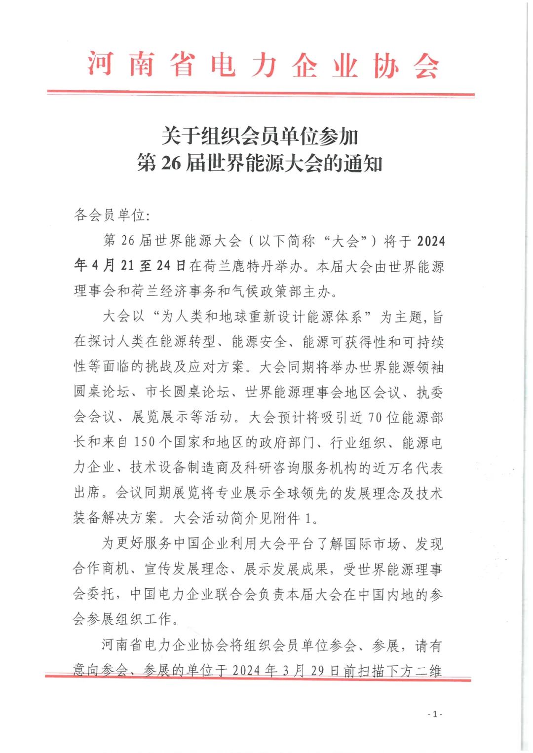 【展会通知】关于组织会员单位参加第26届世界能源大会的通知