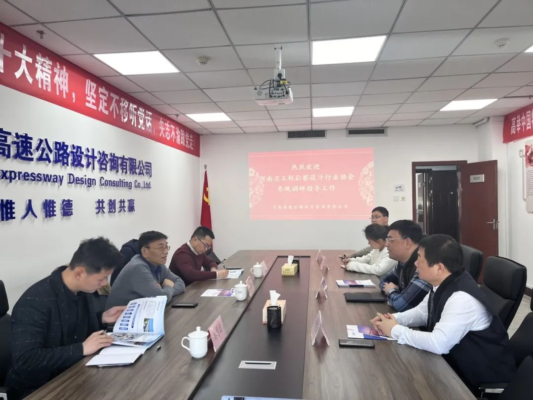 设计公司对省协会的到来表示热烈欢迎,向关心、支持和参与此次调研指导工作的协会领导和同志表示感谢,并简要介绍了公司基本情况、公司理念、专家团队、专精特新、特色设计和发展方向。张守礼会长介绍了省协会发展历程和服务范围(“四新”技术推广应用鉴定评价、科技成果评价、团体标准推广、省级工法评审、科技项目推广、人才培养等),对设计公司作为省高速公路的“保健医生”定位给予肯定,对公司今后的经营发展提出了几点建议:一是要走出去,调研学习先进单位的工作经验和理念;二是要加强企业文化建设,扩大宣传公司的特色及优势;三是要守正创新,在深耕交通养护设计的同时积极参与科研、行标、地标、团标等标准制定,提高企业的社会影响力。