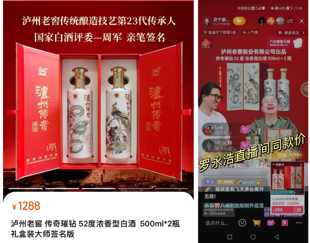 出身显贵,迄今传承了23代!凭实力蝉联五届名酒会“中国名酒”称号;1996年,国务院颁布其为“全国重点文物保护单位”!这款泸州传奇·璀钻也继承了好“血统”,包装还更特别!祥龙出海,寓意大展宏图、步步高升;龙年喝它,一定行大运!这款酒可是泸州老窖酿造技艺23代传承人周军亲笔题字推荐的私藏款,基本不外推。这瓶酒扫码价要1380一套,500ml*2瓶;就算平时做完活动也得千元起。我们愣是软磨硬泡一个月,才给大家争取到少量库存,拿到了和罗永浩直播间同款的福利价?龙凤呈祥礼盒装(500ml*2瓶,52度),只要199元就能带走,相当于1.5折拿下!有送礼需求,还可以直接596元入手一箱,整整6瓶,超实惠。这种过年的硬通货,临时不容易挑到好的,而且一到年底总怕快递有什么差错,今天这波折扣的库存有限,大家要赶紧买~⊙ 泸州老窖股份有限公司出品,一酒一码,防伪鉴别;