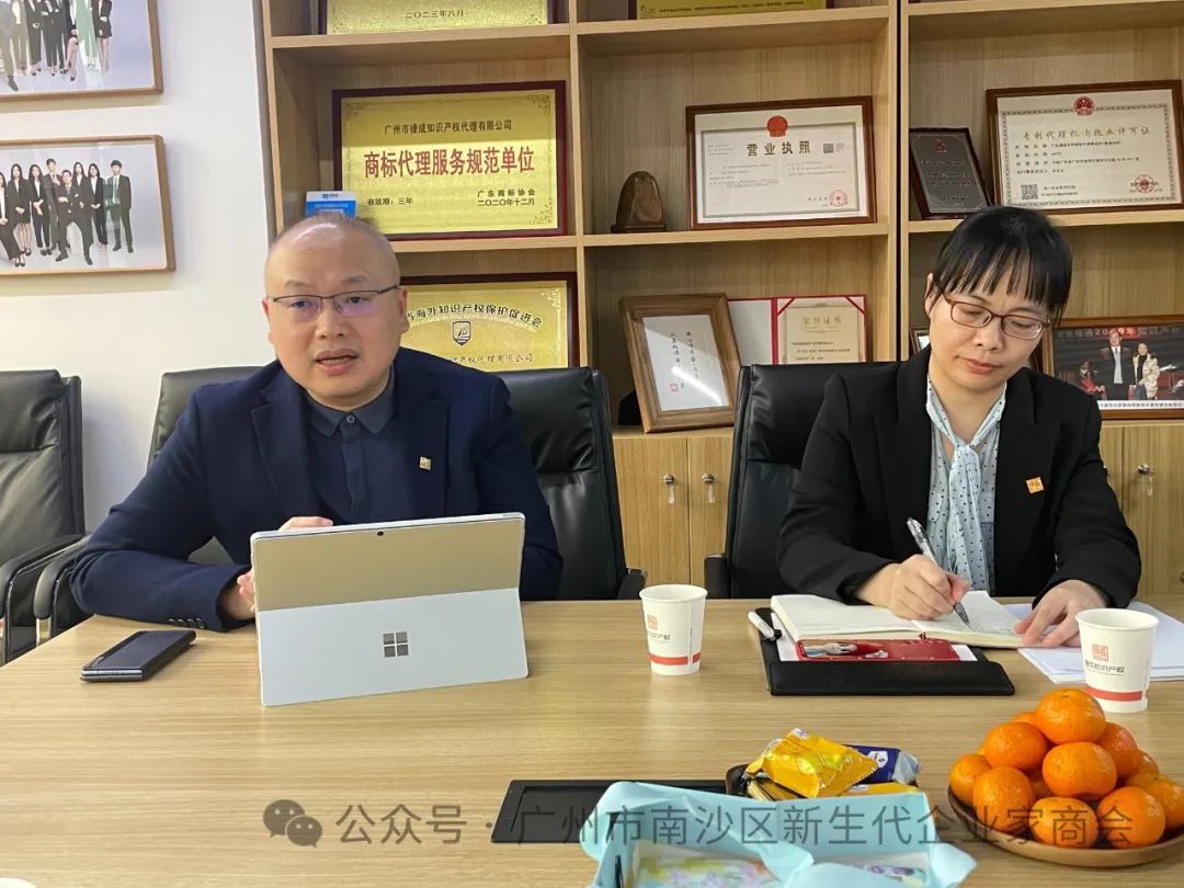 2024年1月11日下午,南沙区新生代企业家商会秘书长张阳、理事彭雷艳、商会理事龚文静、商会会员彭志龙、商会会员吴敏、副秘书长吴小美及商贤廖胜萍等一行前往我会新晋理事单位广州市捷成知识产权代理有限公司进行走访交流。