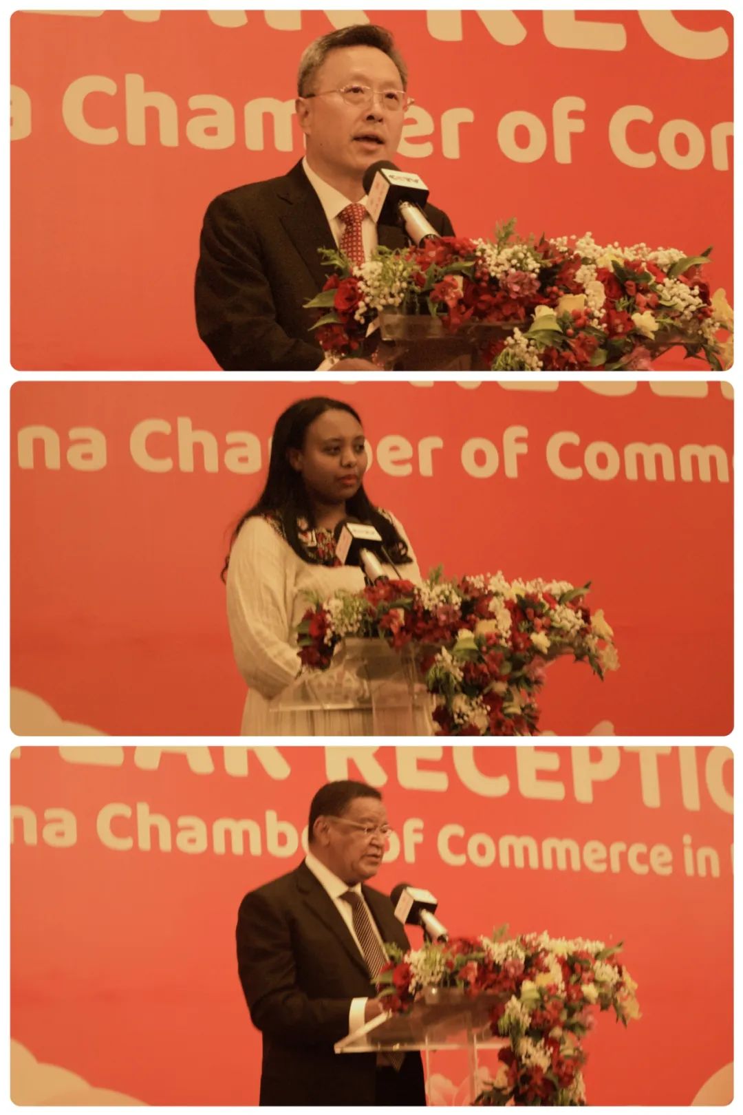 2024年1月12日,中国驻埃塞俄比亚大使赵志远出席埃塞中国商会2024年新年招待会并致辞。埃塞前总统穆拉图、工业部长梅拉库、科技创新部长贝利特、卫生部长莉亚、妇工部长埃尔戈格、交通部长阿勒姆、矿业部长哈布塔姆、埃塞驻华大使塔费拉、投资委主任莱利斯等埃塞政要出席,埃塞航空、埃塞电力公司、埃塞糖业集团、援埃医疗队等来自埃塞业界、援外机构、中资企业的300余名代表与会。埃塞前总统穆拉图、投资委主任莱利斯分别致辞,负责经济商务工作的杨依杭公参主持招待会,申钦民公参、黎翔武官、张亚巍参赞、薛炜参赞出席,招待会上还表演了丰富多彩的文体节目。