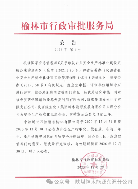 在安全生产标准化达标企业的创建工作中,公司进一步完善了安全管理制度、强化了员工安全意识、落实了安全责任制、提升了整个公司的安全素质,为公司的稳定、持续发展打下了坚实的基础。公司始终坚持“安全第一、预防为主、综合治理”的安全生产方针,不断完善安全标准化体系建设工作。此次被授予"安全生产标准化三级企业",标志着公司的安全生产水平跃上了一个新的台阶,也意味着公司在保障企业安全生产工作迈出了重要的一步。