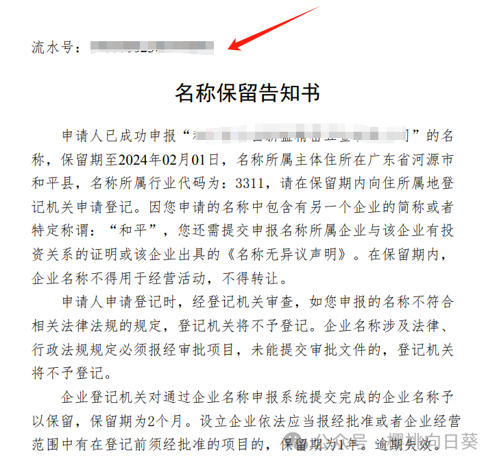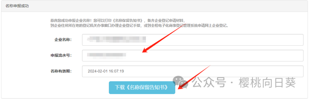 这时会跳到以下页面,记住流水号,下载名称保留通知书。