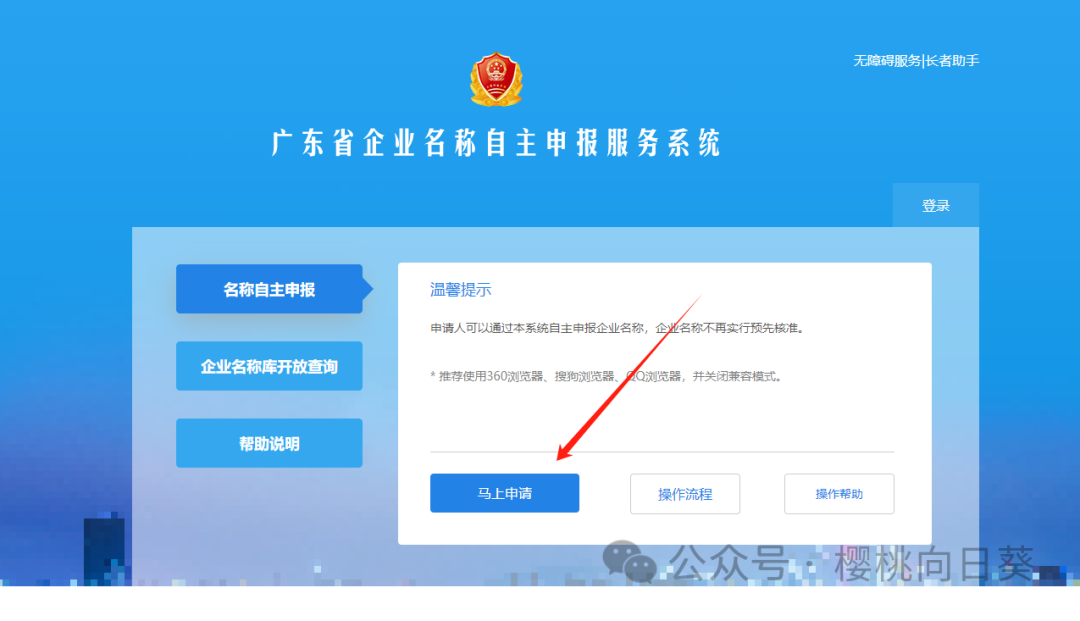 第二步,点击新设立企业名称申报。