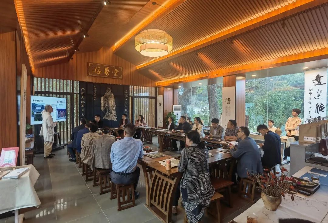 随后大家齐聚宁山书院游艺堂举行座谈会,王院长为大家介绍了宁山书院的历史,他说,书院作为文化交流的场所,能够吸引不同地区的人们聚集,进行学术、文学等方面的交流。有助于促进地方文化的多元性,也为人们提供了一个共同的平台,增进了解和交流。书院还可为企业开展一系列的丰富的传统文化培训活动和讲座,帮助企业员工了解传统文化的内涵和价值,提高他们的文化素养和道德水平。