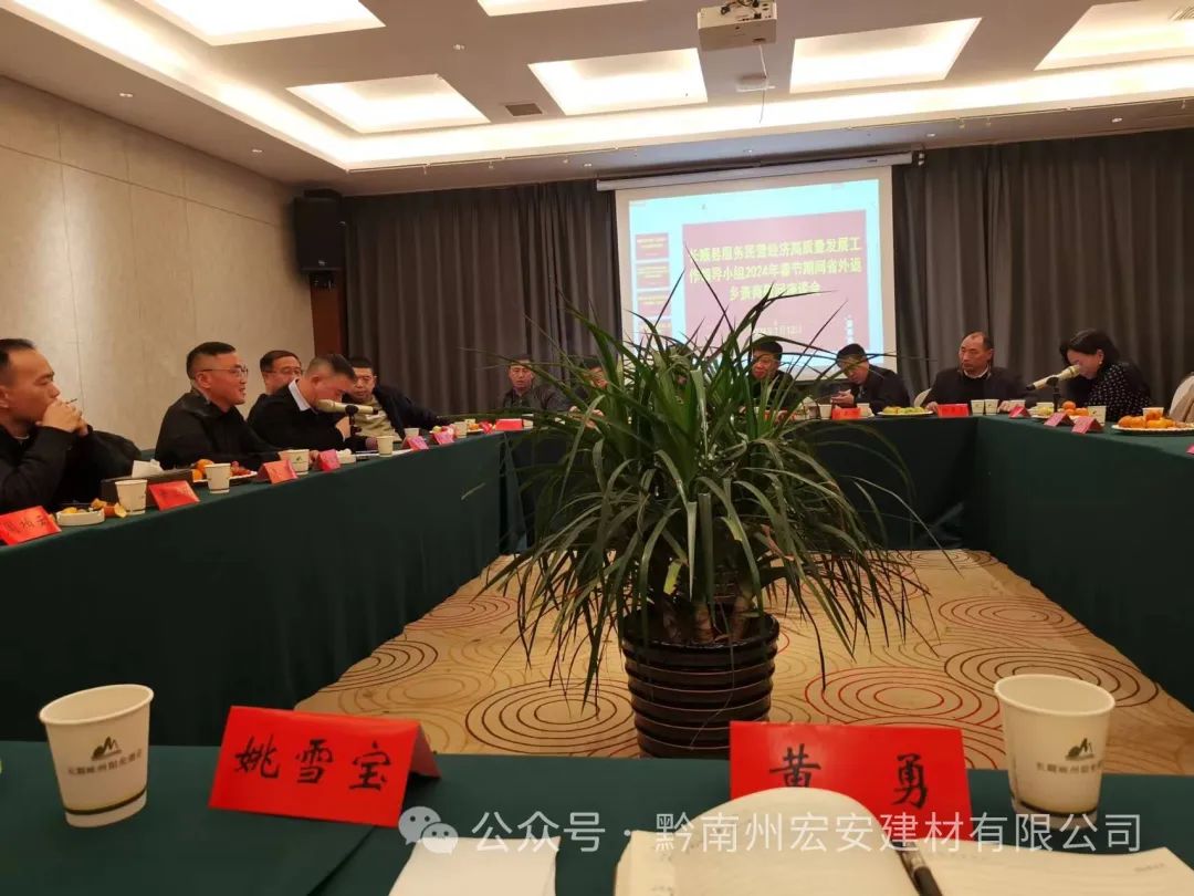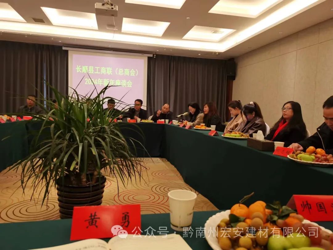2024年1月12日,宏安公司副总黄勇参加长顺县工商联(总商会)2024年新年座谈会。一、长顺县工商联党组书记彭贤坤主持会议并总结2023年工作暨安排部署2024年工作。二、各企业代表发言。三、长顺县投资促进局领导讲话。四、长顺县生态环境局领导讲话。五、长顺县人大副主任、县工商联主席梅仕忠做总结讲话。长顺县有关企业代表参加会议。