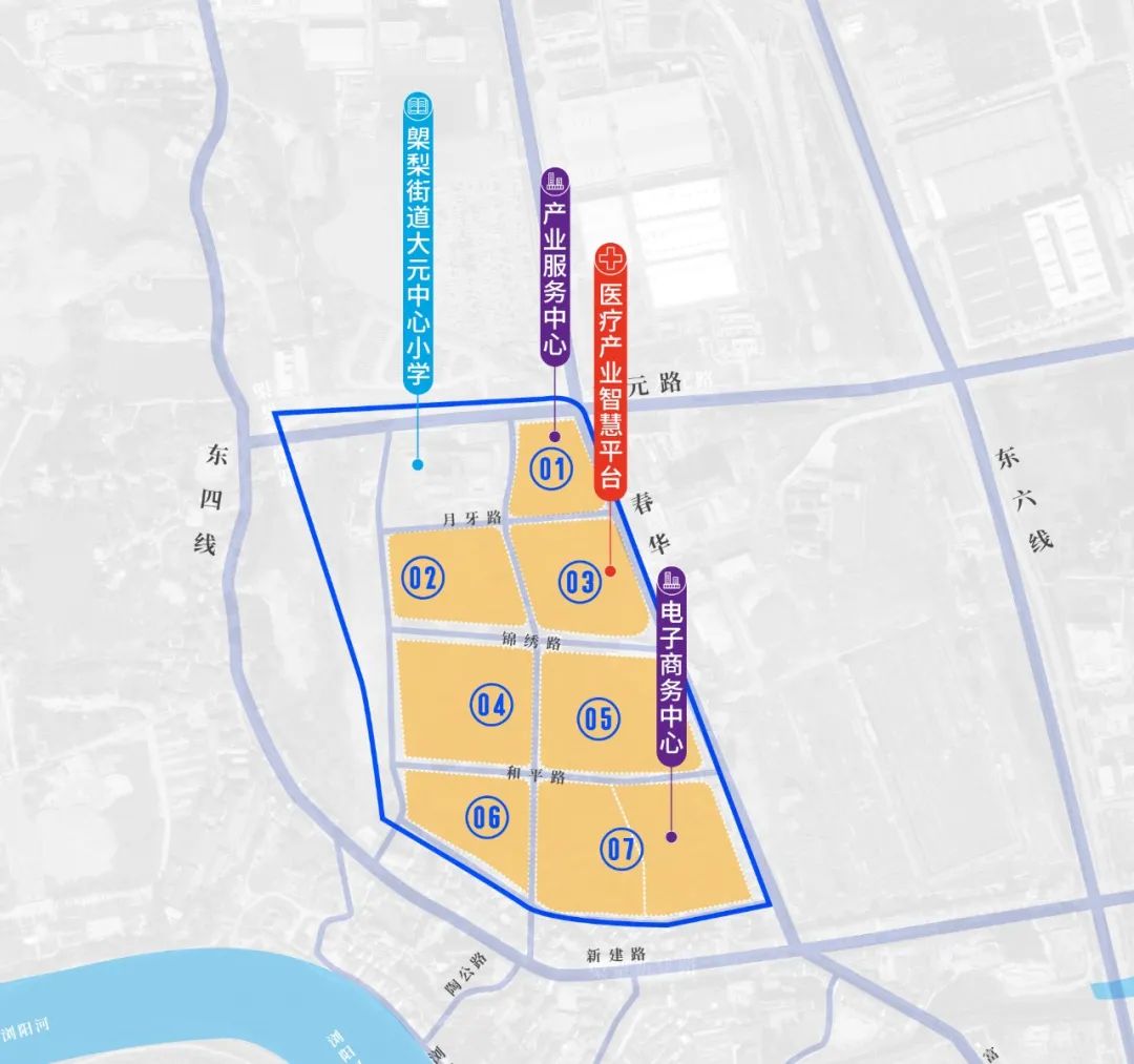 商务商贸产城融合区位于大元路以南、新建路以北、东六路以西、东四路及浏阳河畔以东合围区域。