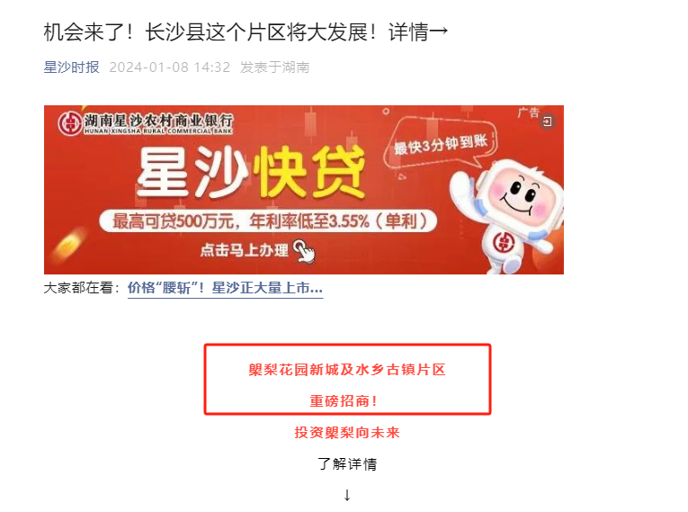 该片区地处于长沙县绝佳地段,交通出行便利,生态环境优美,紧靠浏阳河第七湾,临9915亩地的花田垸湿地公园;将围绕花园小学,向外拓展优质教育品牌资源合作,提升片区整体教育资源的质量;已建成秋江医院(三甲综合医院),提升区域全体居民医疗健康服务;将打造成青年向往、景城共融、生态宜居的未来公园样板社区。