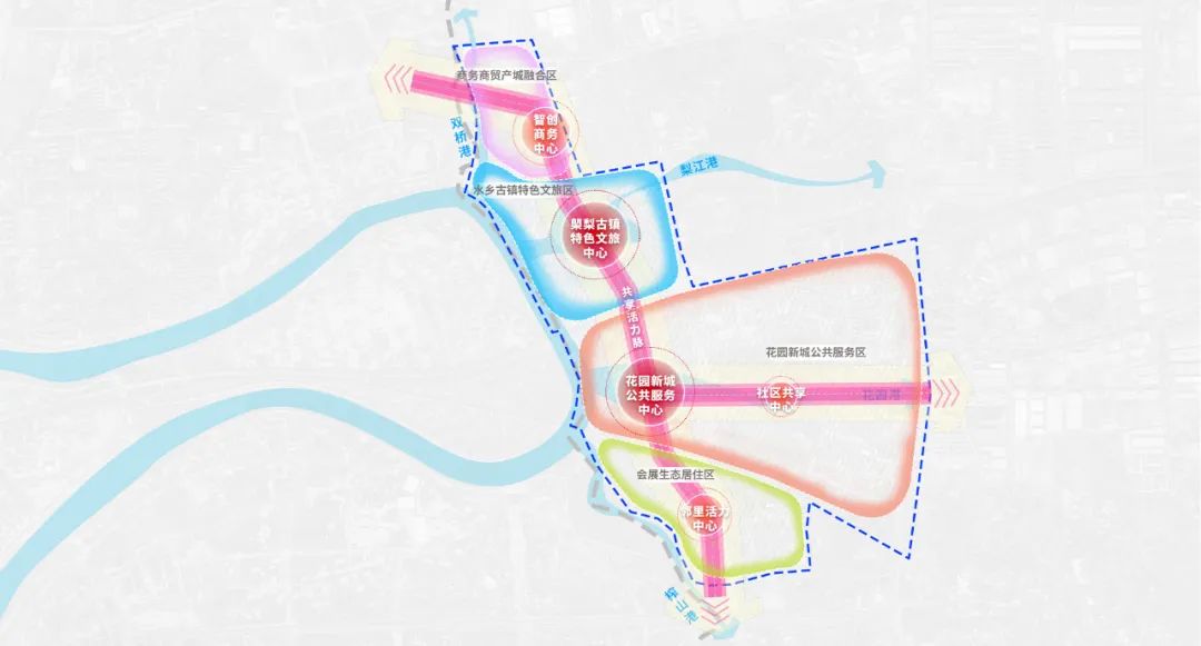 水乡古镇核心文旅区位于新建路以南、机场高速以北、东六路以西及浏阳河畔以东合围区域。