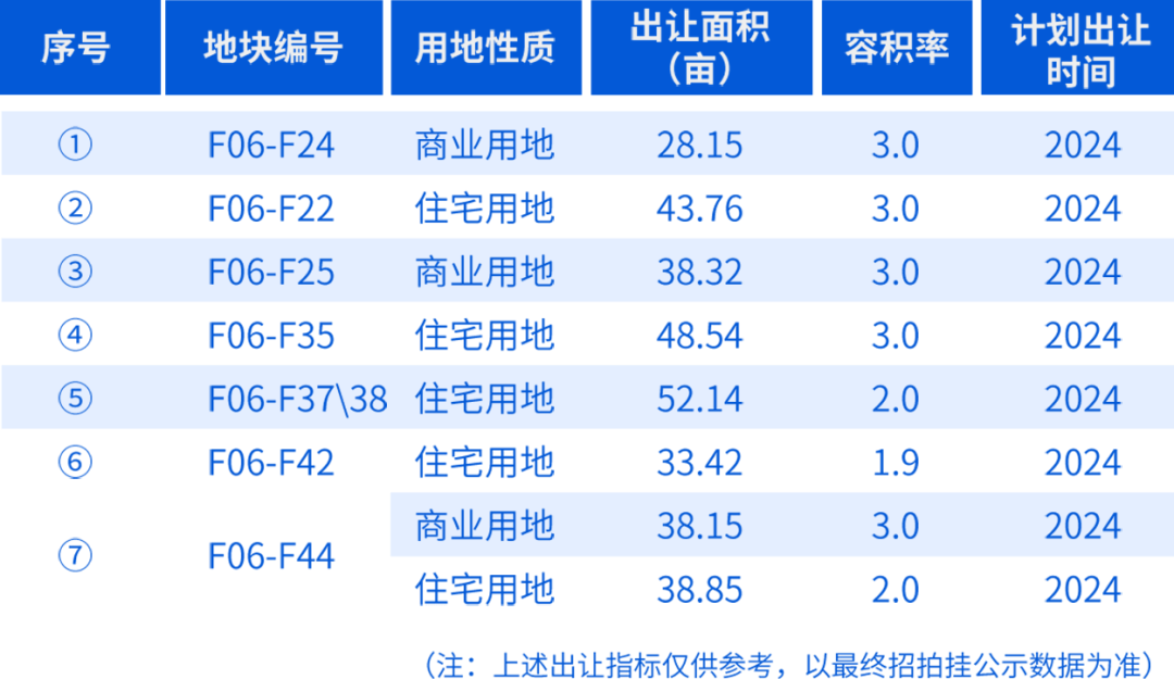 片区可出让土地面积约为321.33亩,共计7宗地块,包括2宗纯商业地、4宗纯住宅地,1宗商住混合用地,全部计划在2024年出让!