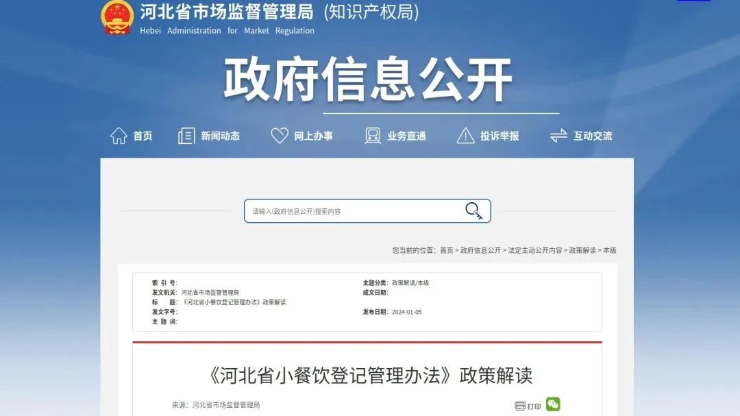 新修订的《河北省小餐饮登记管理办法》