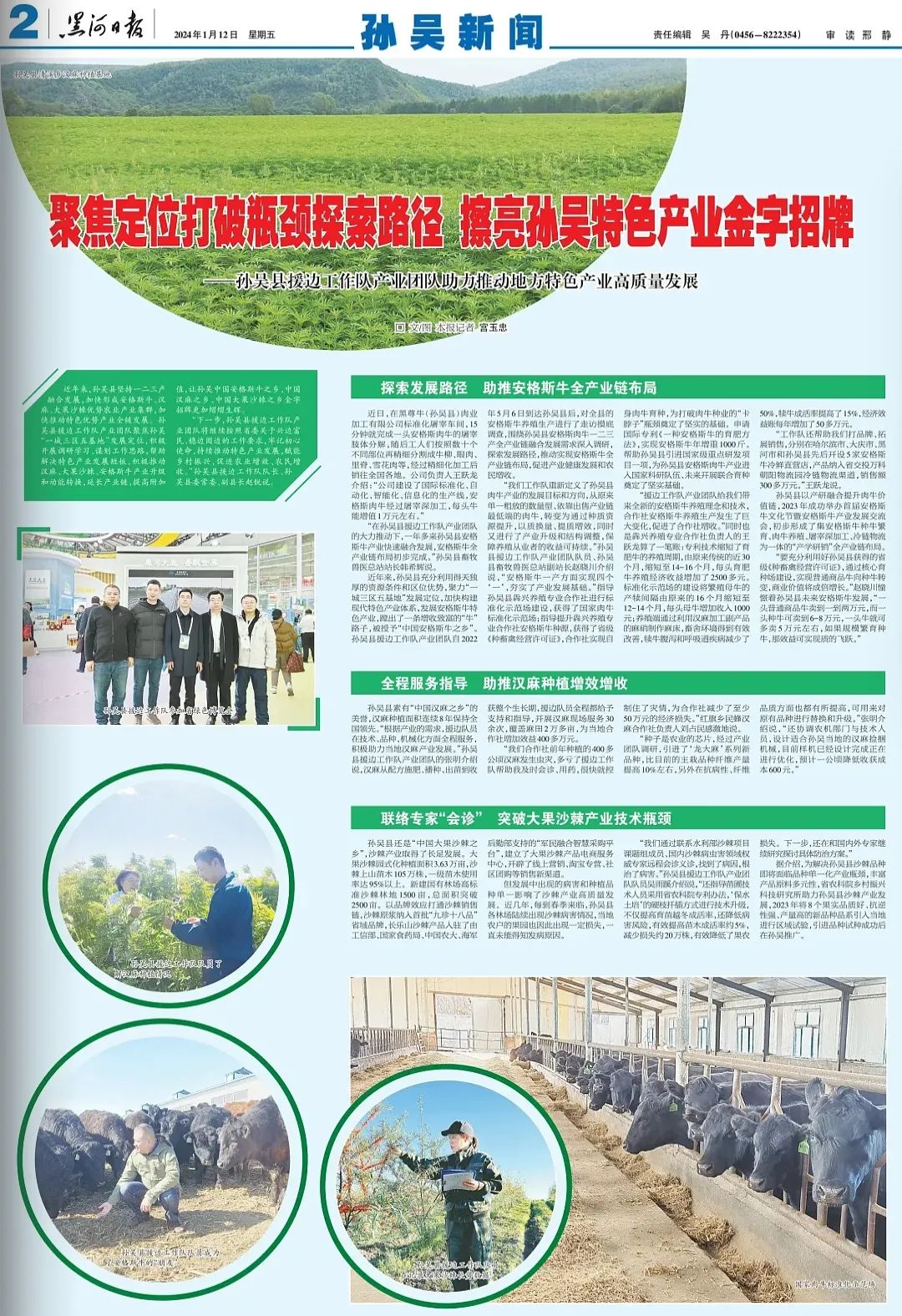“在孙吴县援边工作队产业团队的大力推动下,一年多来孙吴县安格斯牛产业快速融合发展,安格斯牛全产业链布局初步完成。”孙吴县畜牧兽医总站站长韩希辉说。