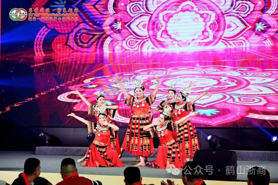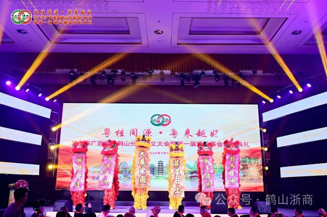 江门市广西商会鹤山分会第一届理监事会就职典礼在精彩的《雄狮贺岁》、《铜鼓敲出壮乡情》表演中拉开帷幕。