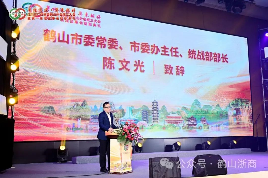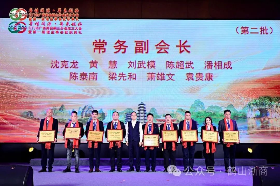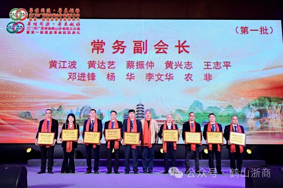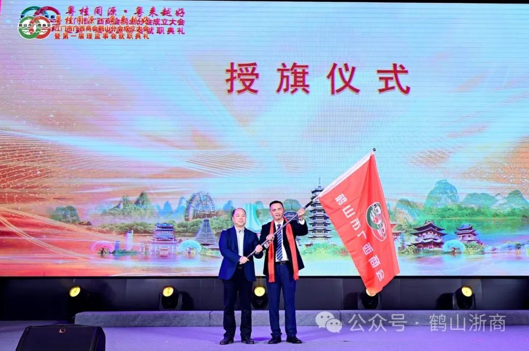 授旗仪式宣告了江门市广西商会鹤山分会第一届理监事会正式成立,标志着江门市广西商会鹤山分会在鹤发展树立了新的里程碑。