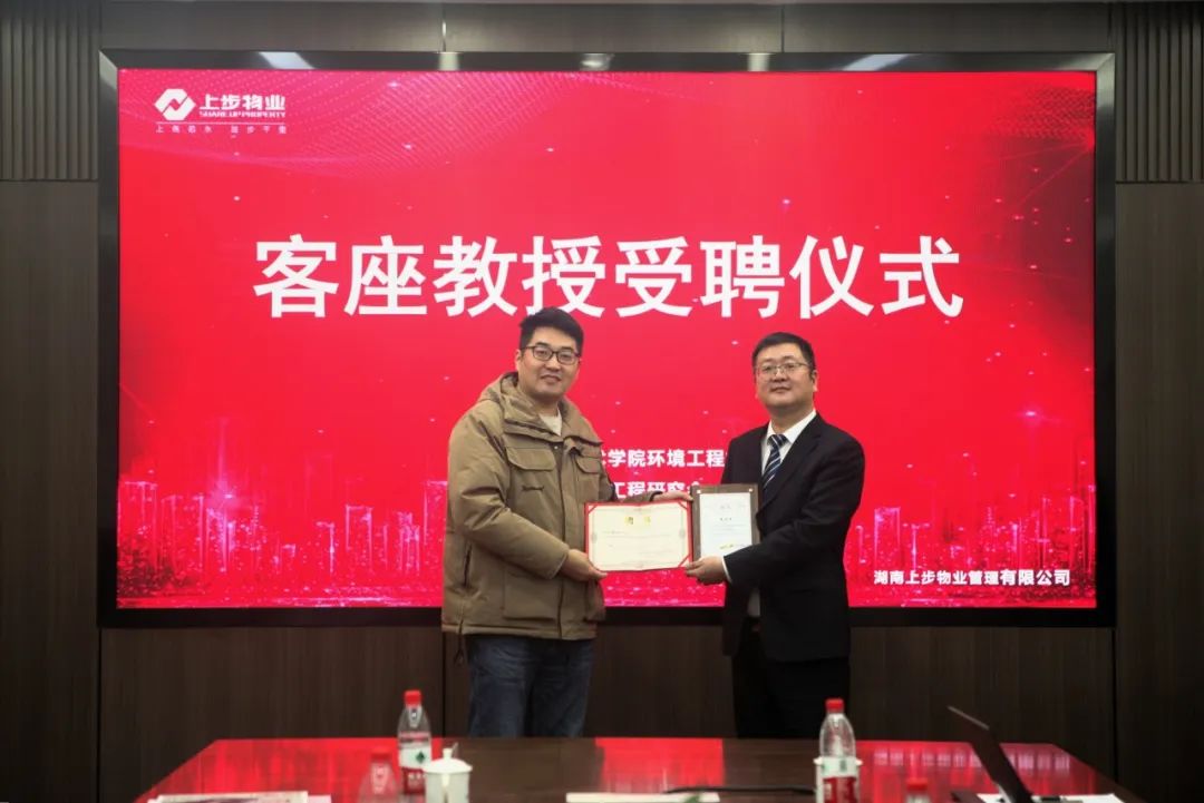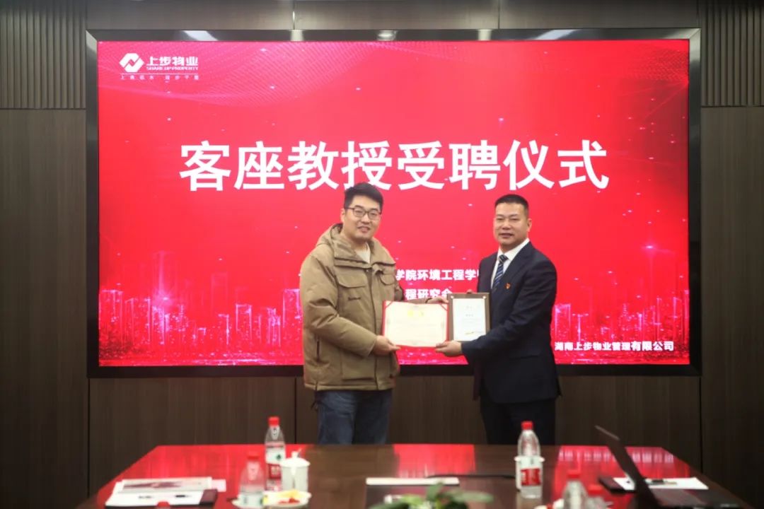 随后举行了“科技创新物业服务产业合作研发基地”授牌及环境工程学院客座教授聘任仪式。