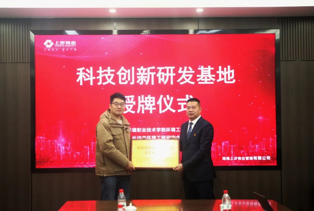 1月12日,由长沙市环境工程研究会与长沙环境保护技术职业学院环境工程学院共建的“科技创新物业服务产业合作研发基地”授牌及环境工程学院客座教授受聘仪式,在常务副会长湖南上步物业管理有限公司举行。经企业自主申报、专家组现场严格评审,上步物业被授予“科技创新物业服务产业合作研发基地”,共同承担环境工程领域物业管理行业科技创新合作研发重任,董事长李孝兵、总经理夏苍旻被聘为长沙环境保护技术职业学院环境工程学院客座教授。长沙市环境工程研究会会长王永坚、长沙环境保护技术职业学院环境工程学院院长李二平、副院长杨健、公司董事长李孝兵、总经理夏苍旻等出席授牌仪式。