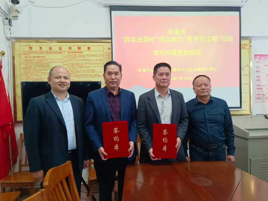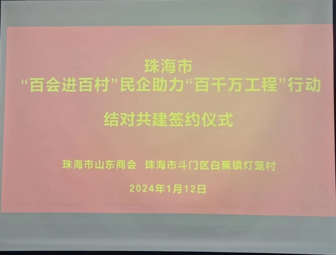 在与会人员的见证下,珠海市山东商会监事长耿炳军与灯笼村党总支书记、村委主任周建平完成了《珠海市“百会进百村”民企助力“百千万工程”行动结对共建框架协议书》签约;明确了双方的权力与义务,为后续帮扶工作的开展奠定了基础。